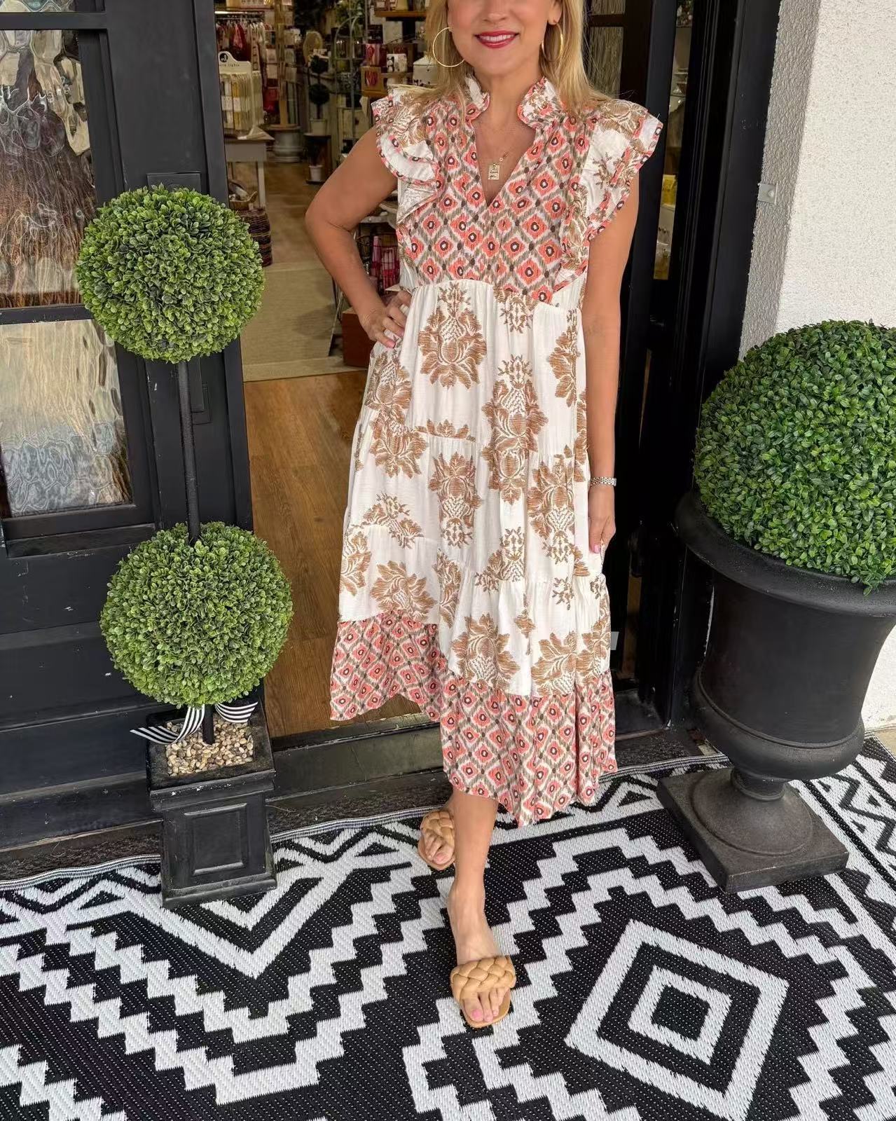 2025 아마존 독립 역 봄과 여름 유럽과 미국의 새로운 패션 인쇄 플러스 사이즈 불규칙한 헴 원피스
