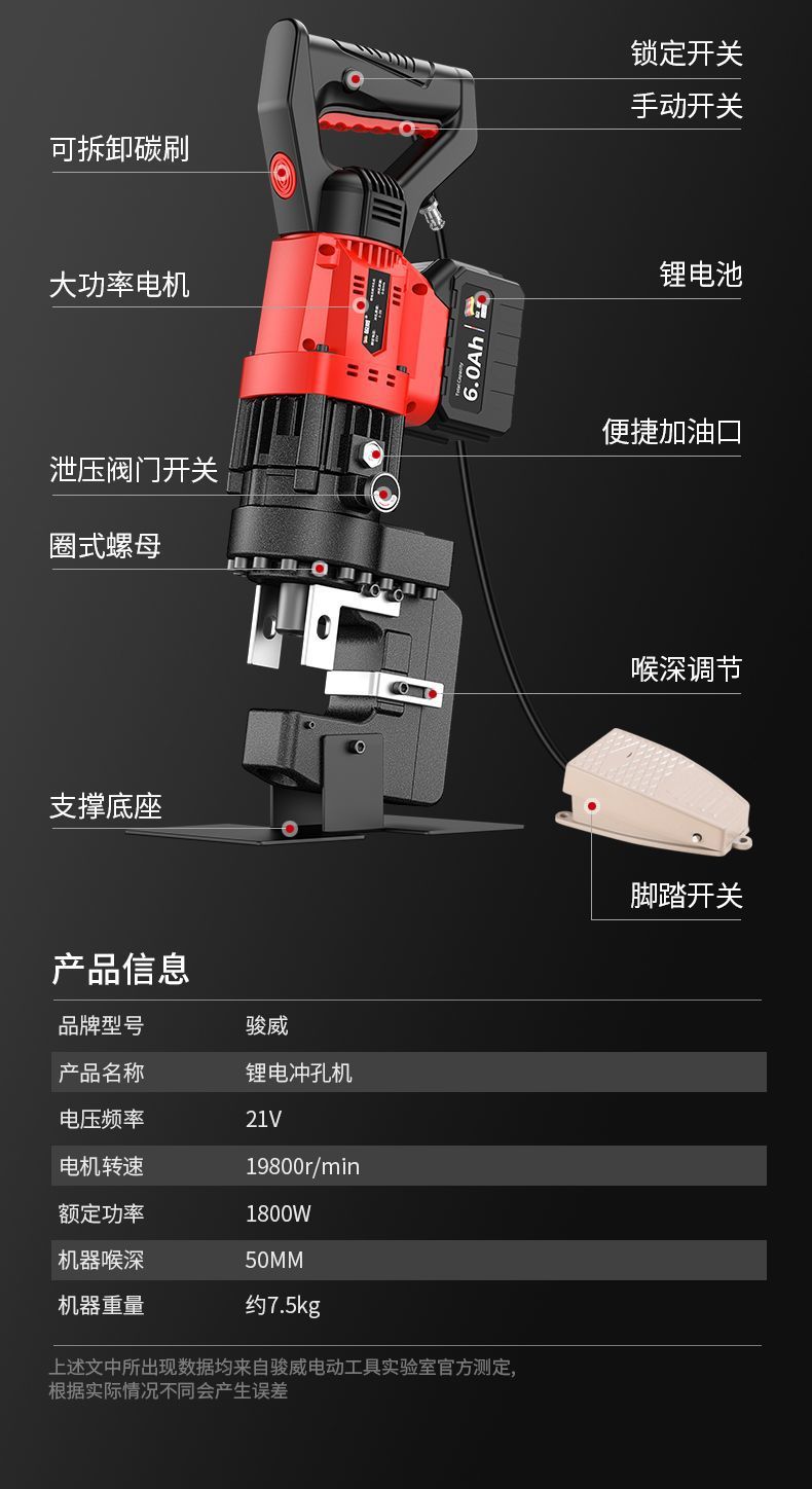 Junwei 리튬 전기 유압 펀칭 기계 전기 채널 강철 각도 강철 각도 철 태양 광 절단 기계 휴대용 이중 목적 펀칭 기계스토어 가기