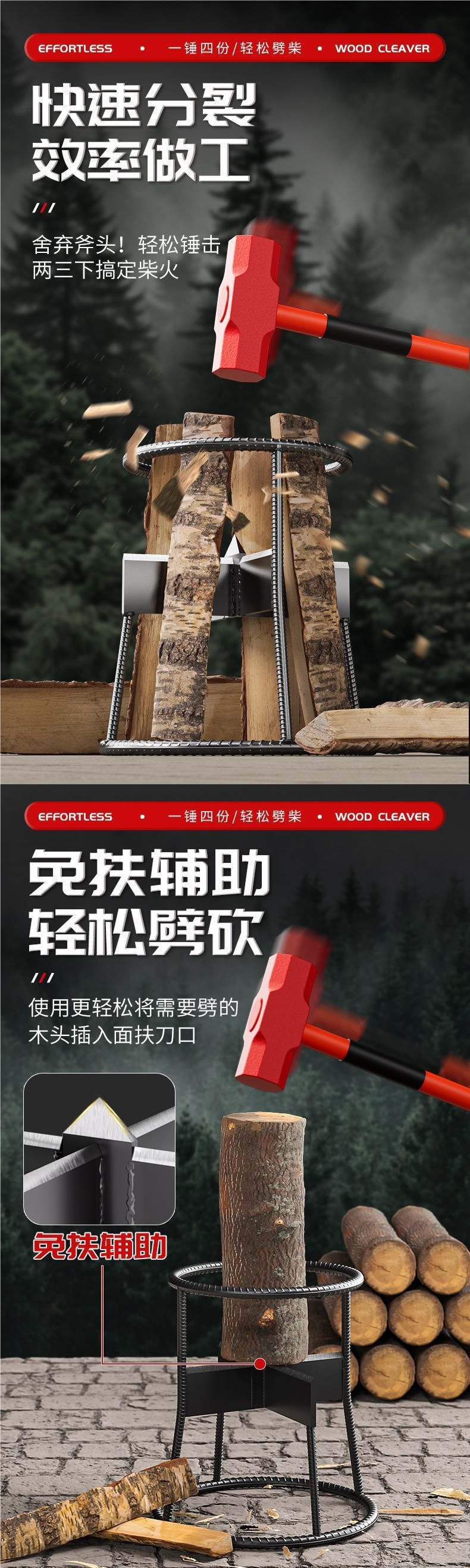 • 신형 [라이트 크로스] 목재 쪼개는 도구 + 짧은 손잡이 8파운드 해머