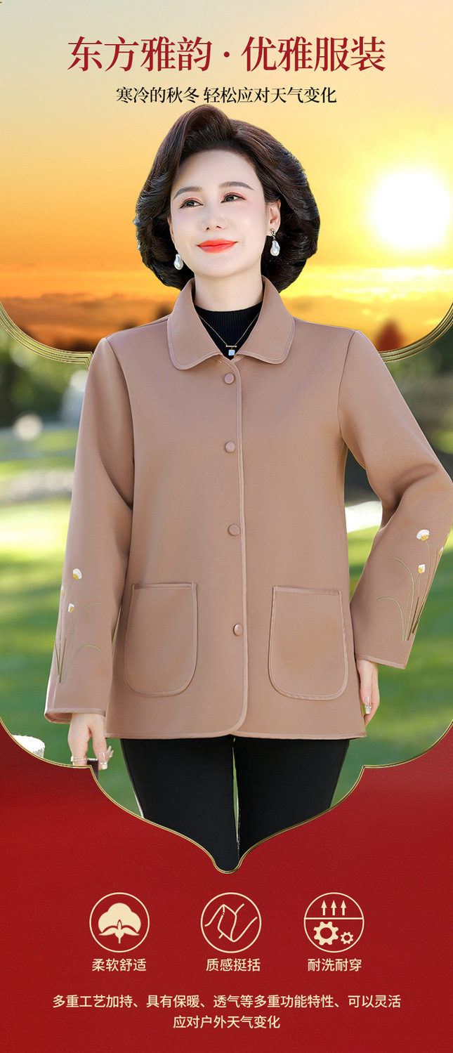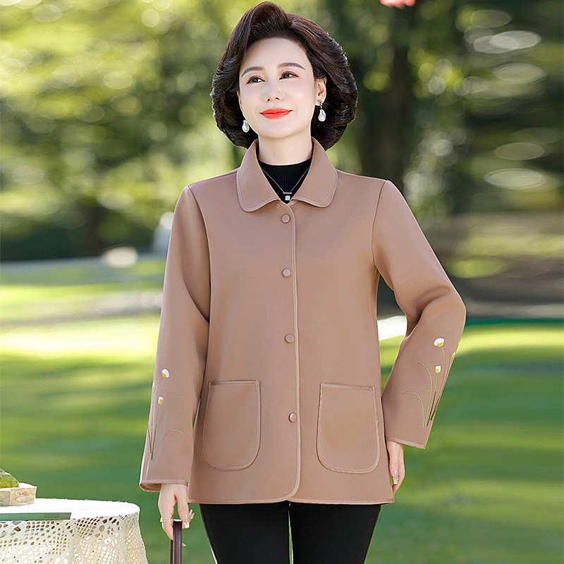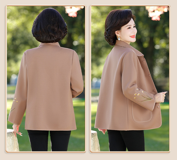 하이 엔드 2025 중년 및 노인 새로운 봄과 가을 서양식 패션 여성 의류 어머니 기질 중년 최고 단색 코트 여성스토어 가기
