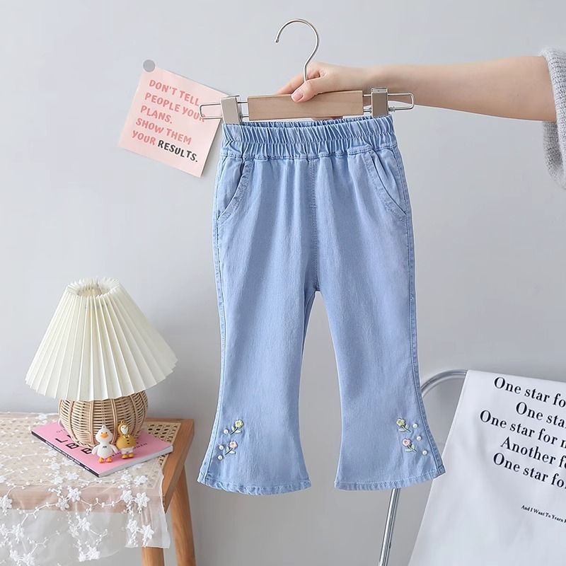 소녀 여름 청바지 아기의 서양식 어린이 맞춤형 트렌디 브랜드 텐셀 얇은 자수 꽃 진주 플래 바지스토어 가기