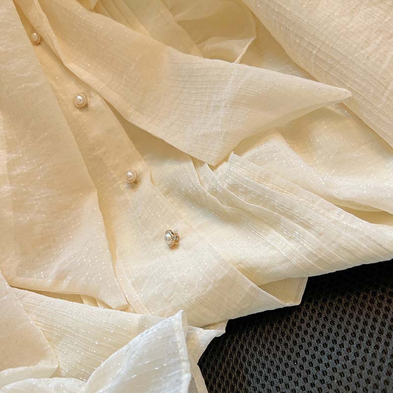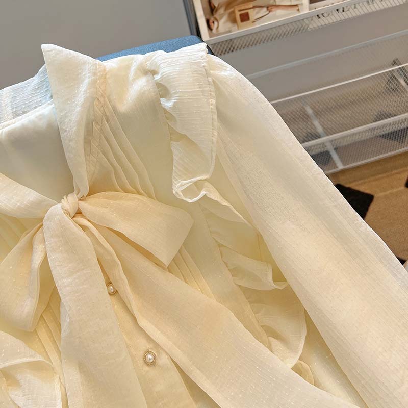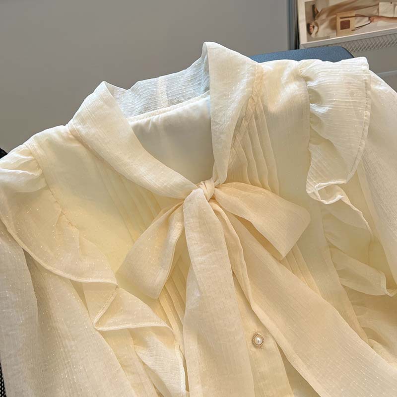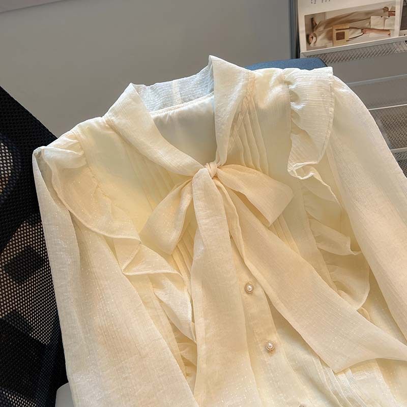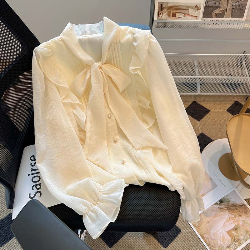 프랑스 하이 엔드 시폰 탑 여성 2025 봄 새로운 디자인 틈새 긴팔 활 셔츠 여성 의류스토어 가기