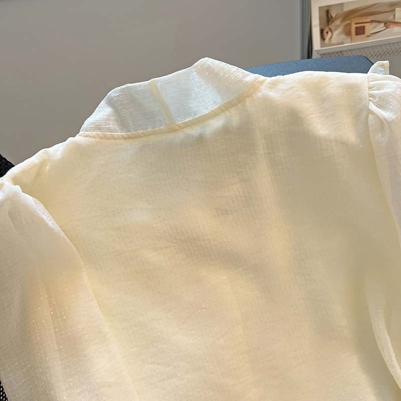 实拍法式高级感雪纺上衣女2024春季新款设计感小众长袖蝴蝶结衬衫