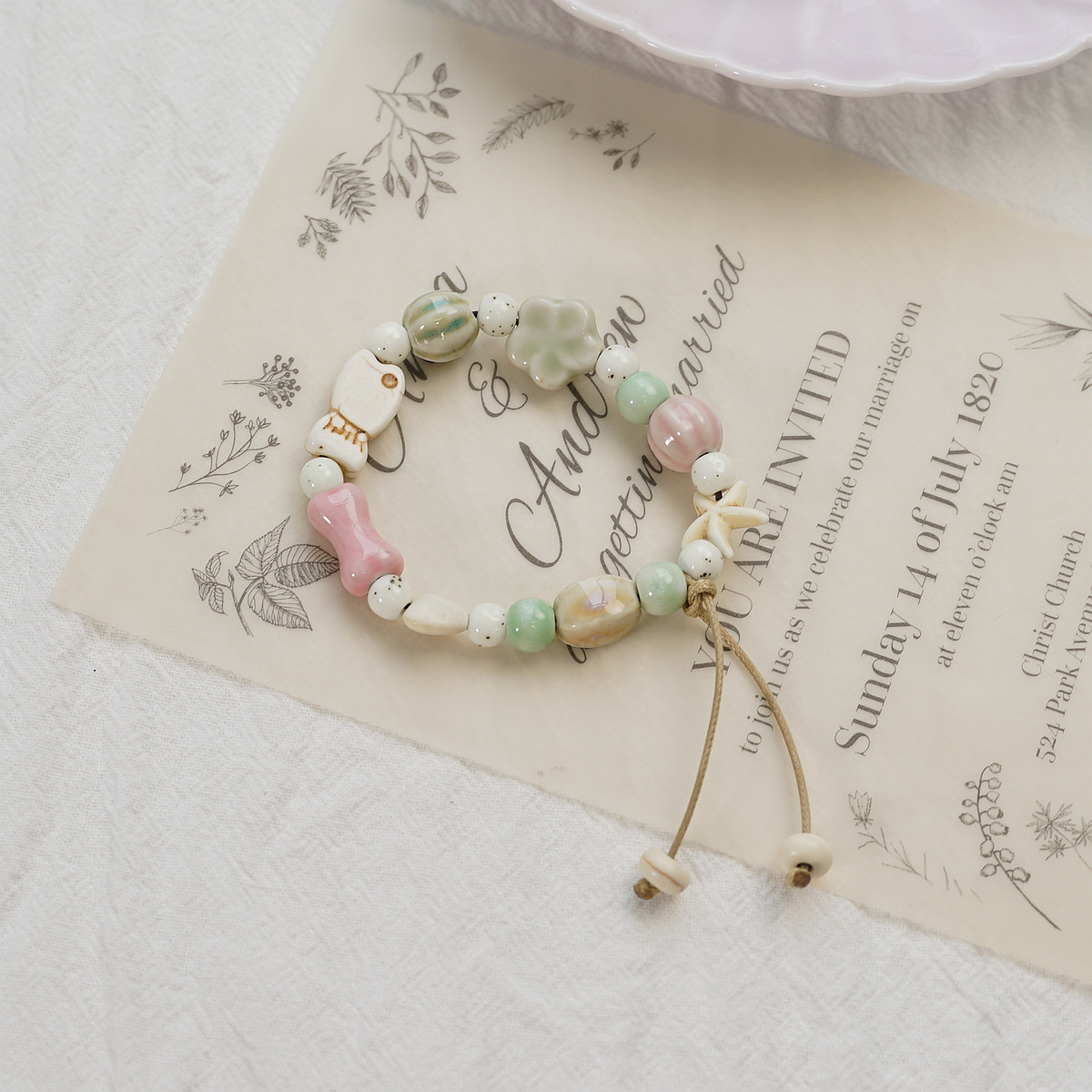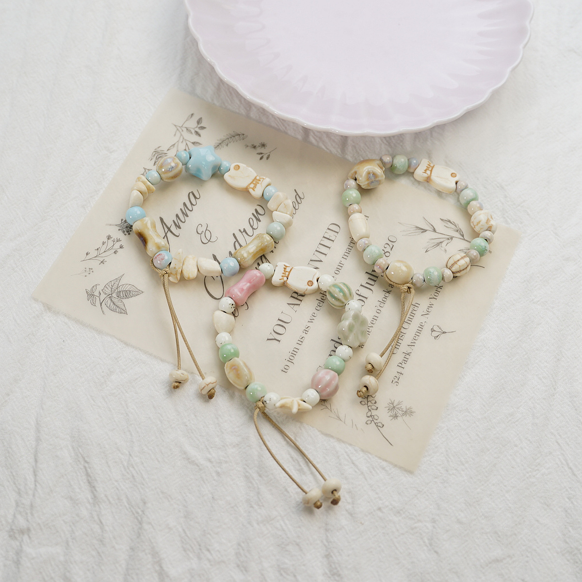 새로운 새로운 중국 패션 팔찌 여성 구슬 틈새 세라믹 복고풍 기질 팔찌 작은 신선한 보석 도매