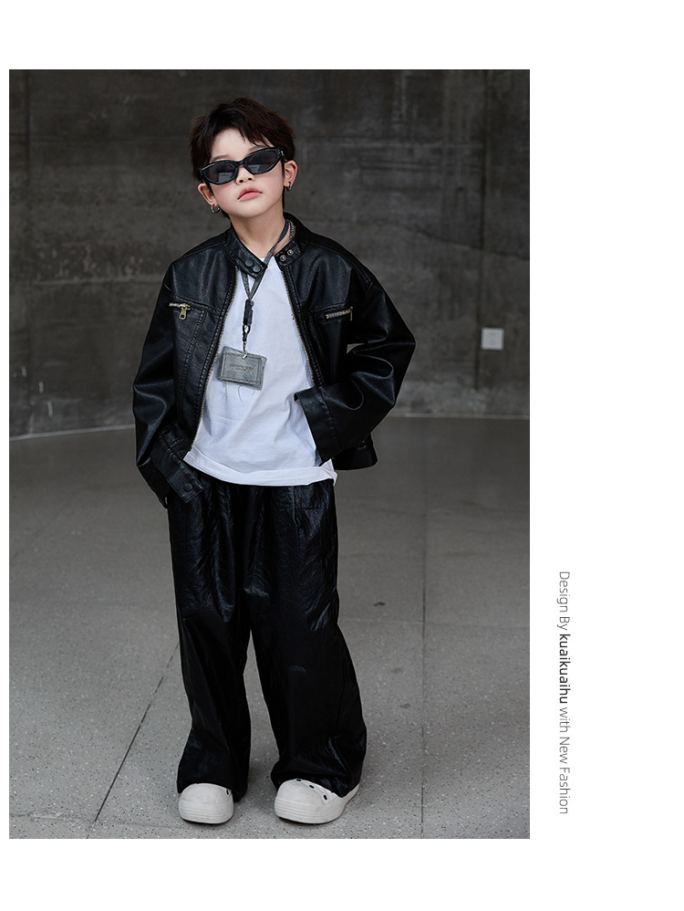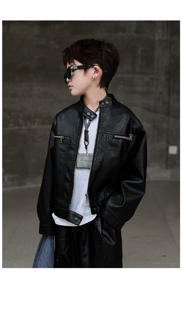 소년 가죽 코트 2025 새로운 어린이 봄과 가을 패션 가죽 자켓 소년 어린이 봄 의류 도매 국경스토어 가기
