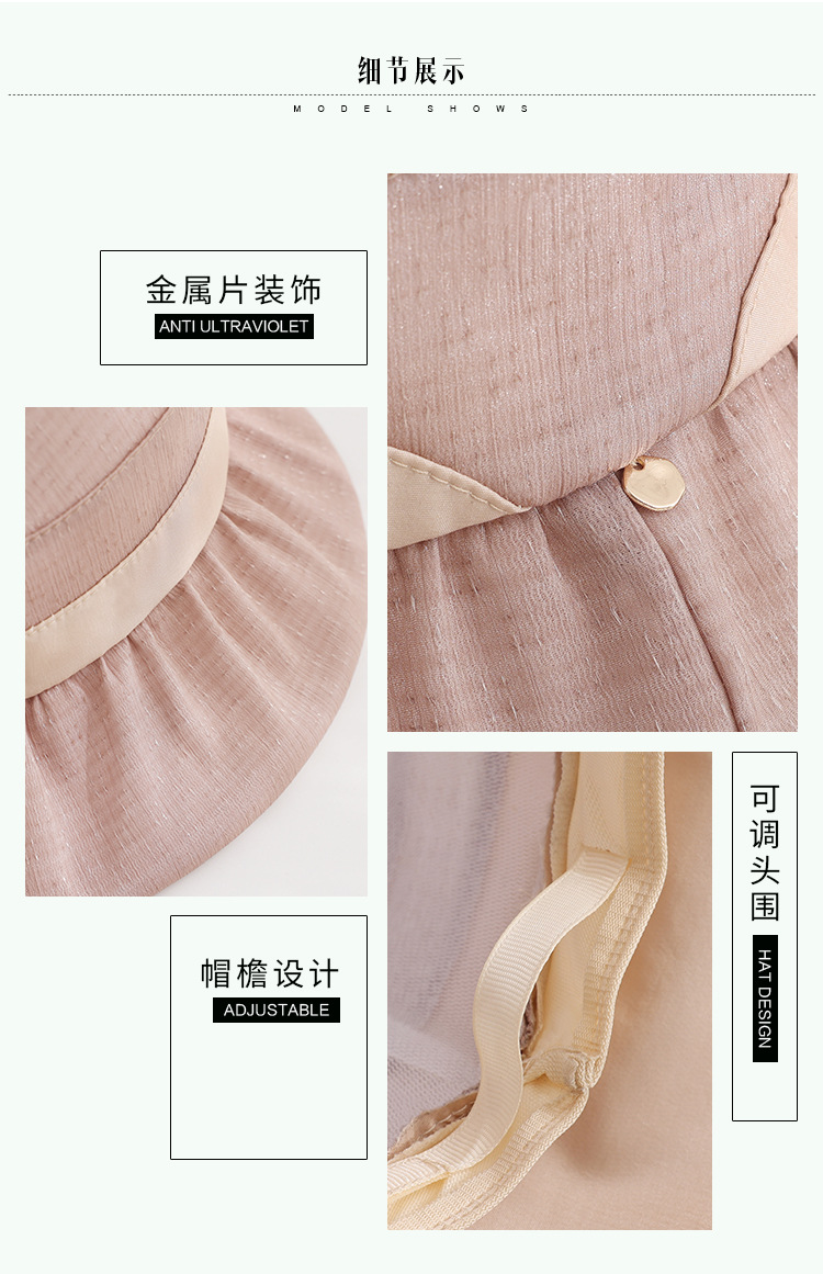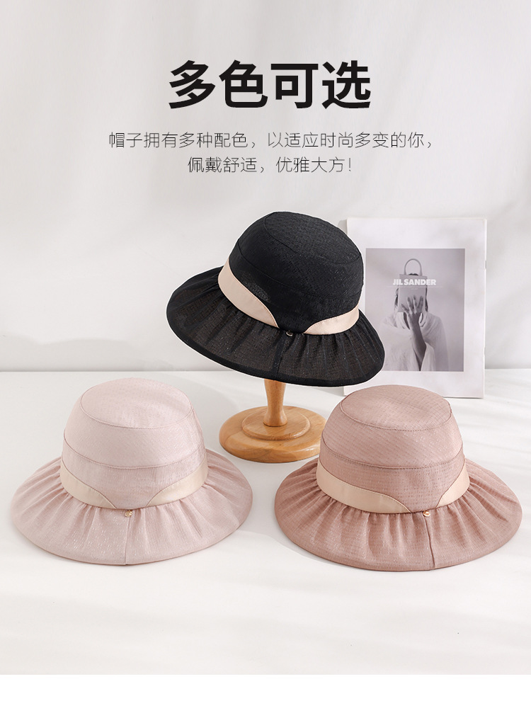 부타 큰 림 UV 보호 태양 모자 여성의 주름 여름 태양 모자 PT2164