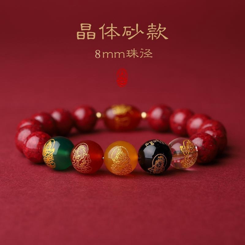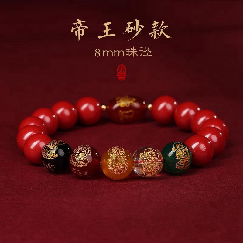 정통 Putuo Mountain 5 도로 부 팔찌 피델리티 Cinnabar 남자와 여자 부적 전송 구슬 행운의 팔찌