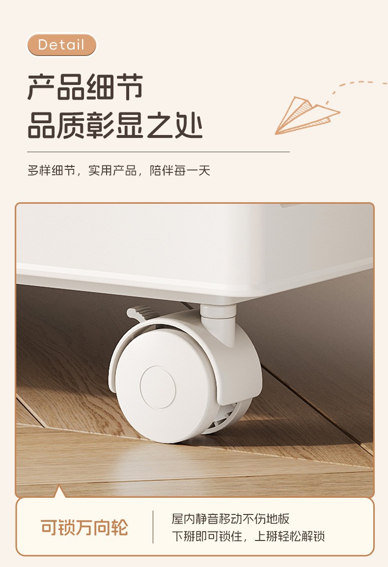 • 4개의 범용 바퀴가 있는 회색과 흰색의 대비 색상