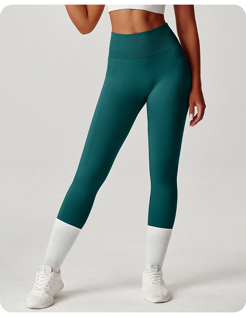 벌거 벗은 사이드 포켓 원활한 요가 바지 복숭아 엉덩이 여성 외부 착용 높은 허리 엉덩이 리프팅 바지 타이트 스포츠 피트니스 바지