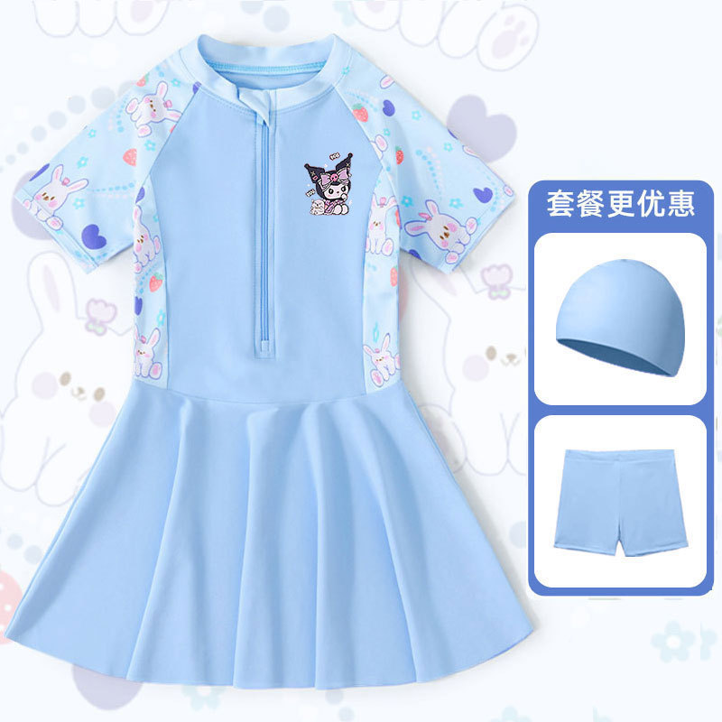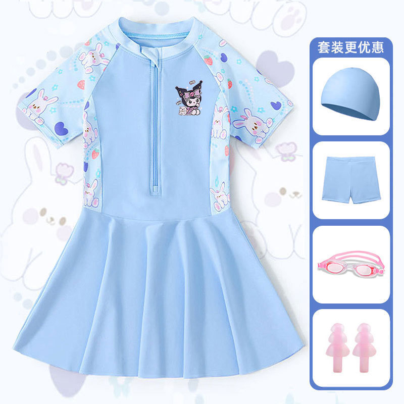 • 파란색 스커트 + 수영모 + 수영 고글 [무료 안전 바지]