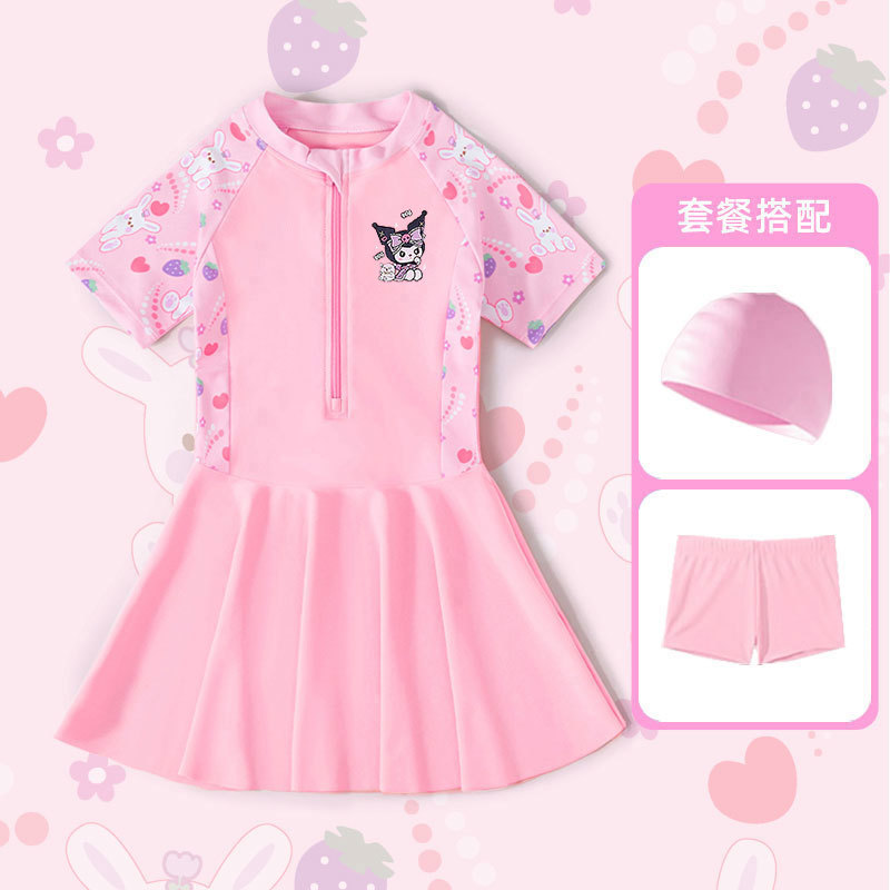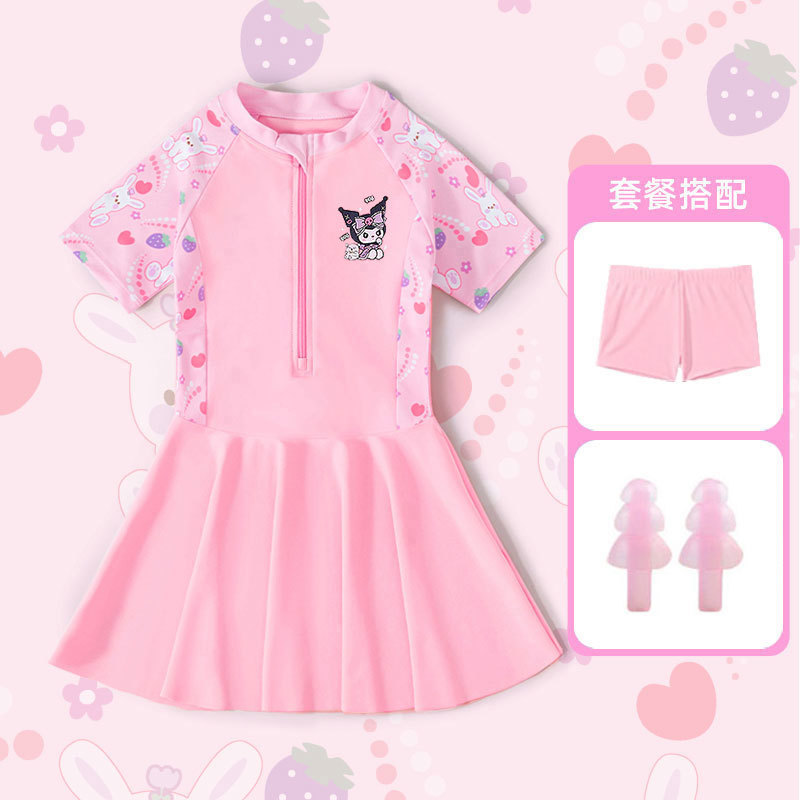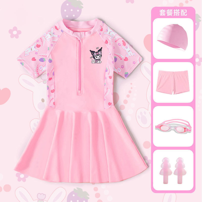 • 핑크 스커트 + 수영모 + 수영 고글 [무료 안전 바지]