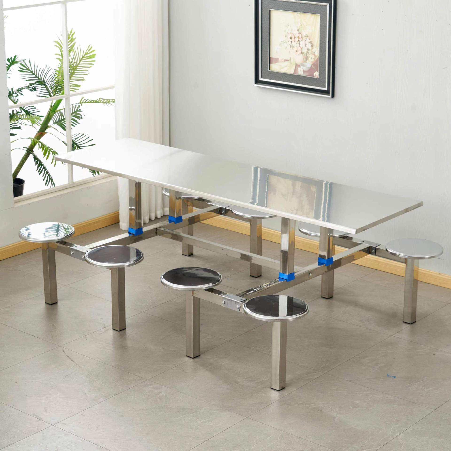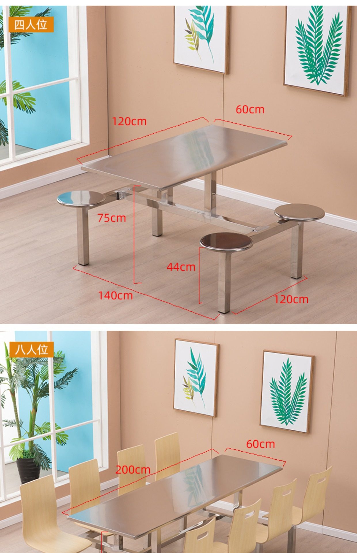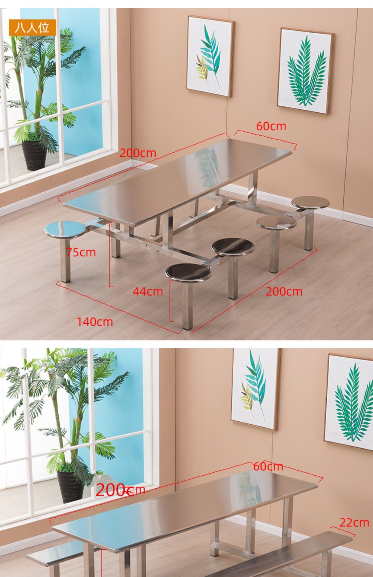 스테인레스 스틸 매점 식탁과 의자 학교 학생 식당 공장 조합 4 명 6 명 8 명이 결합 된 빠른 테이블