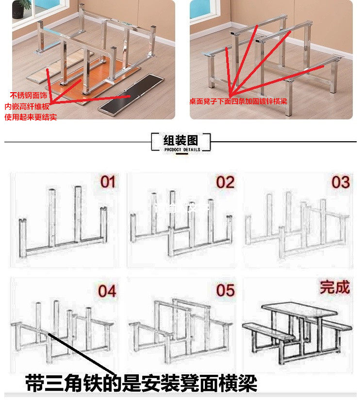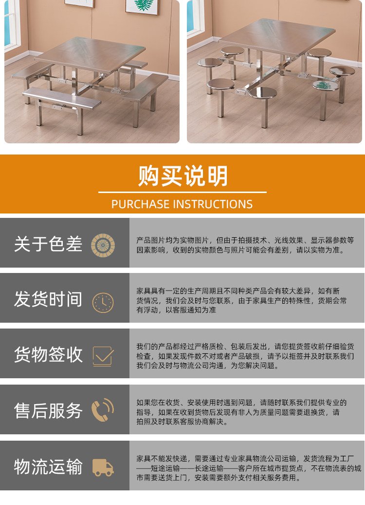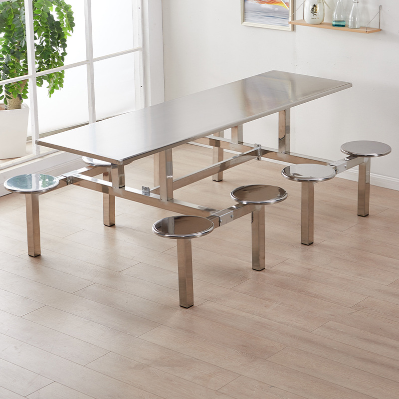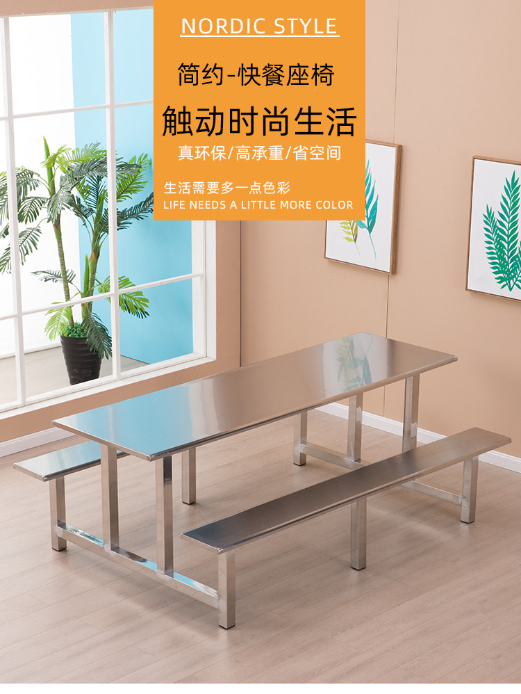 스테인레스 스틸 매점 식탁과 의자 학교 학생 식당 공장 조합 4 명 6 명 8 명이 결합 된 빠른 테이블