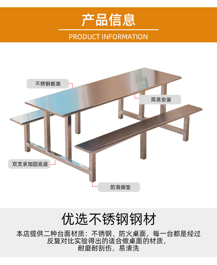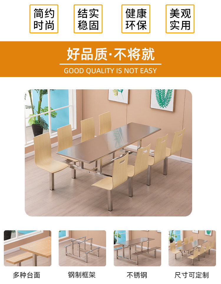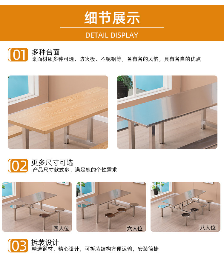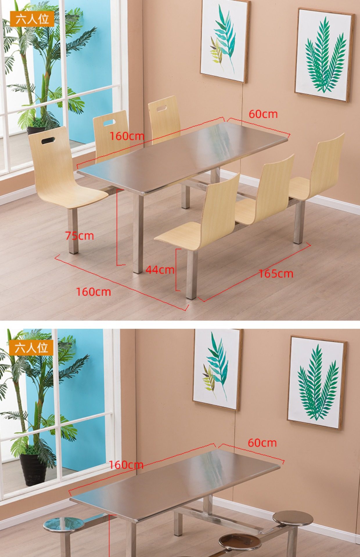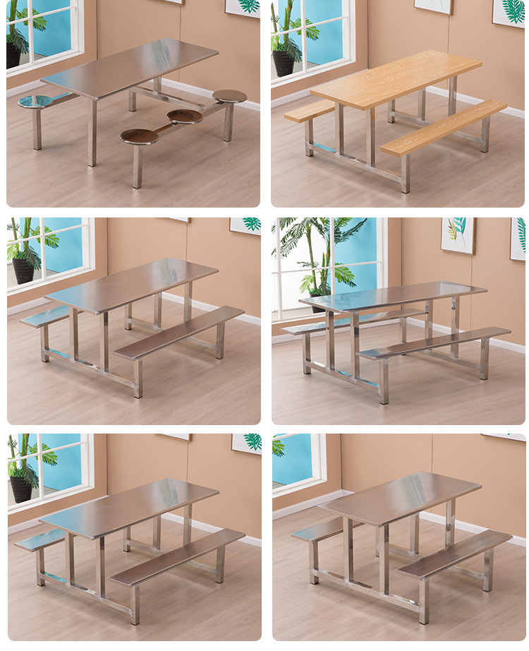 스테인레스 스틸 매점 식탁과 의자 학교 학생 식당 공장 조합 4 명 6 명 8 명이 결합 된 빠른 테이블스토어 가기