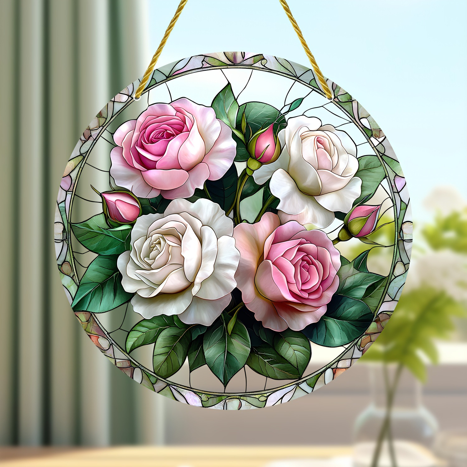 보헤미안 크리스탈 창문이 매달려있는 핑크 로즈 선글라스의 멋진 컬렉션스토어 가기