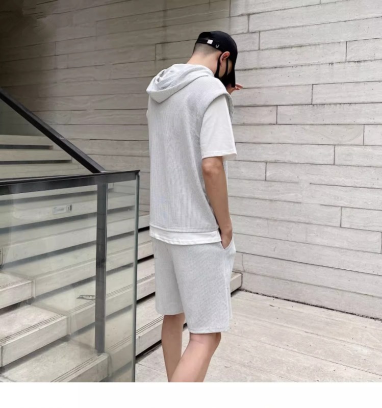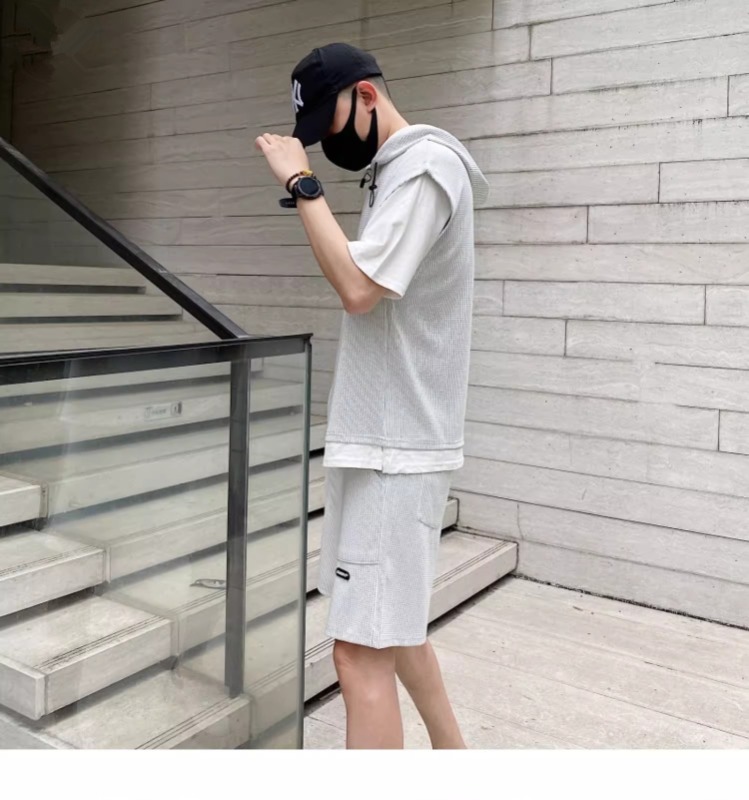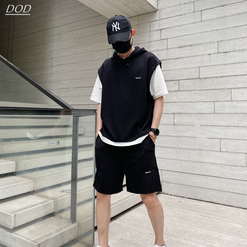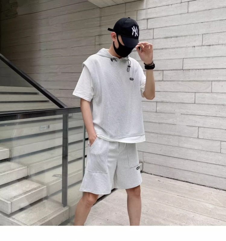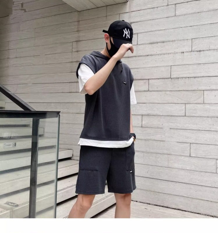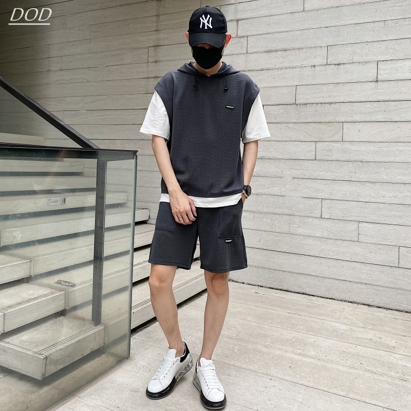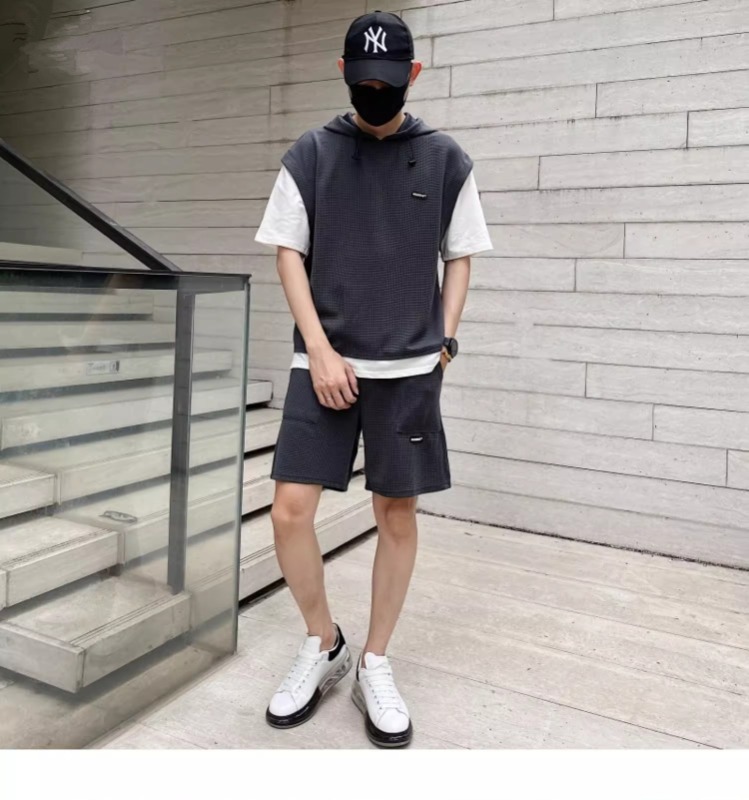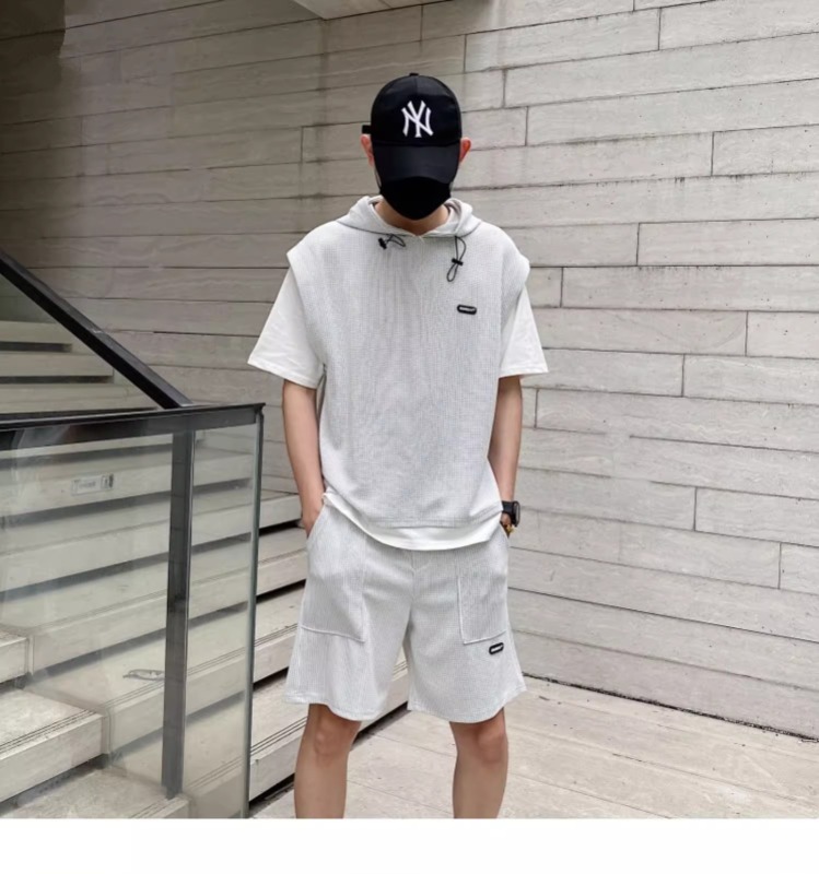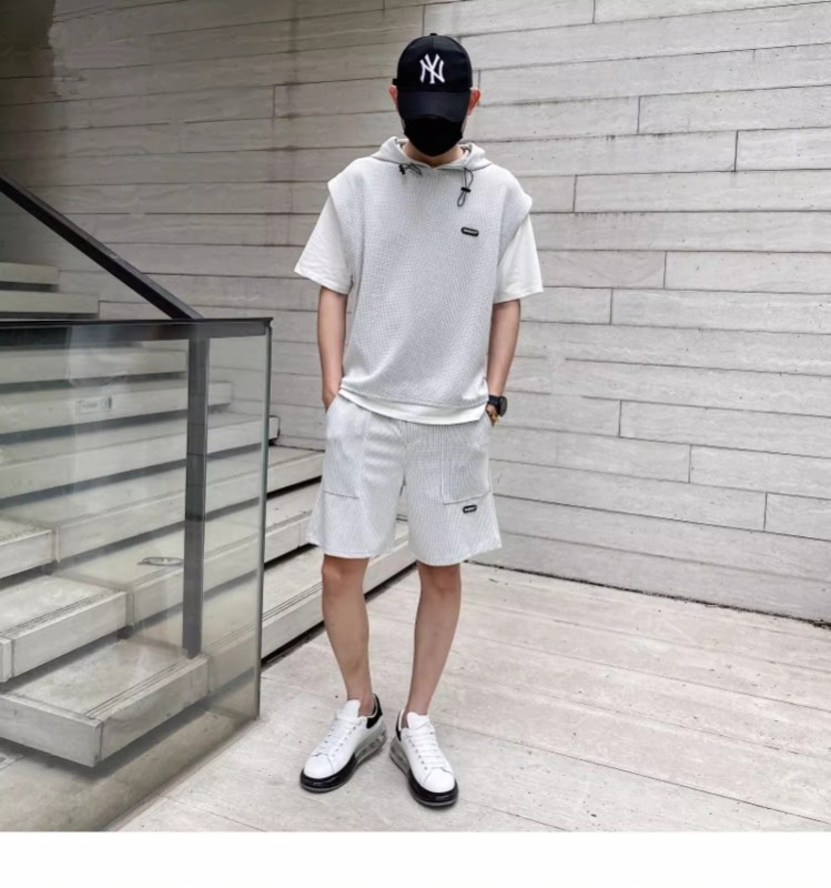 와플 여름 투피스 후드티 반바지 빅사이즈 세트 남성용 ins 투피스 세트 남성 캐주얼 세트스토어 가기