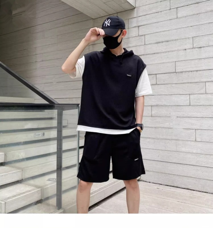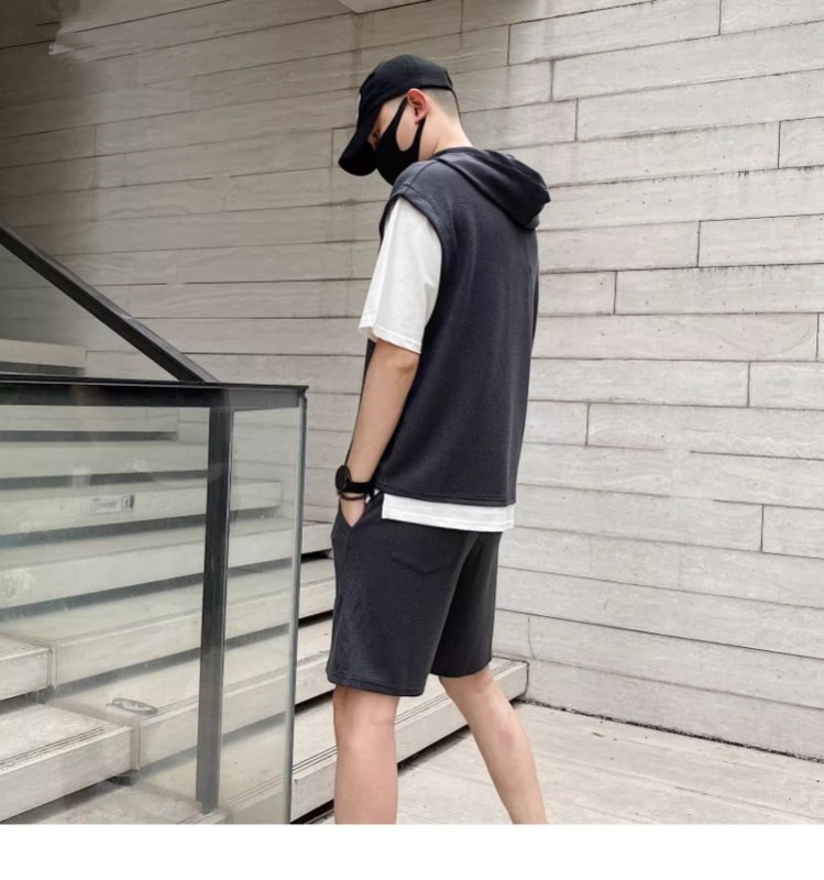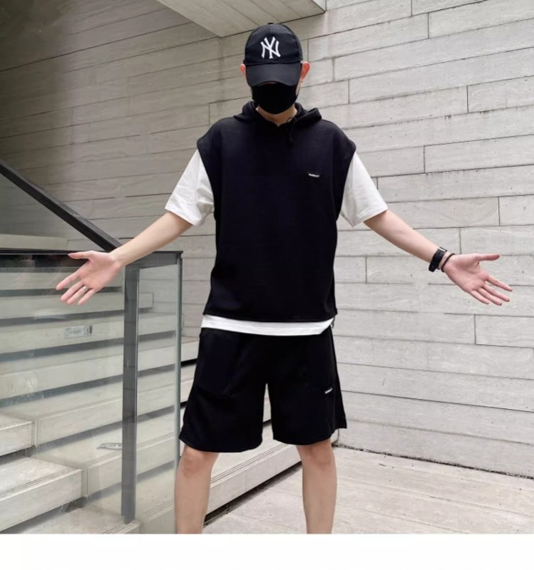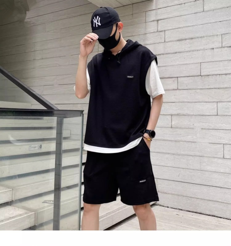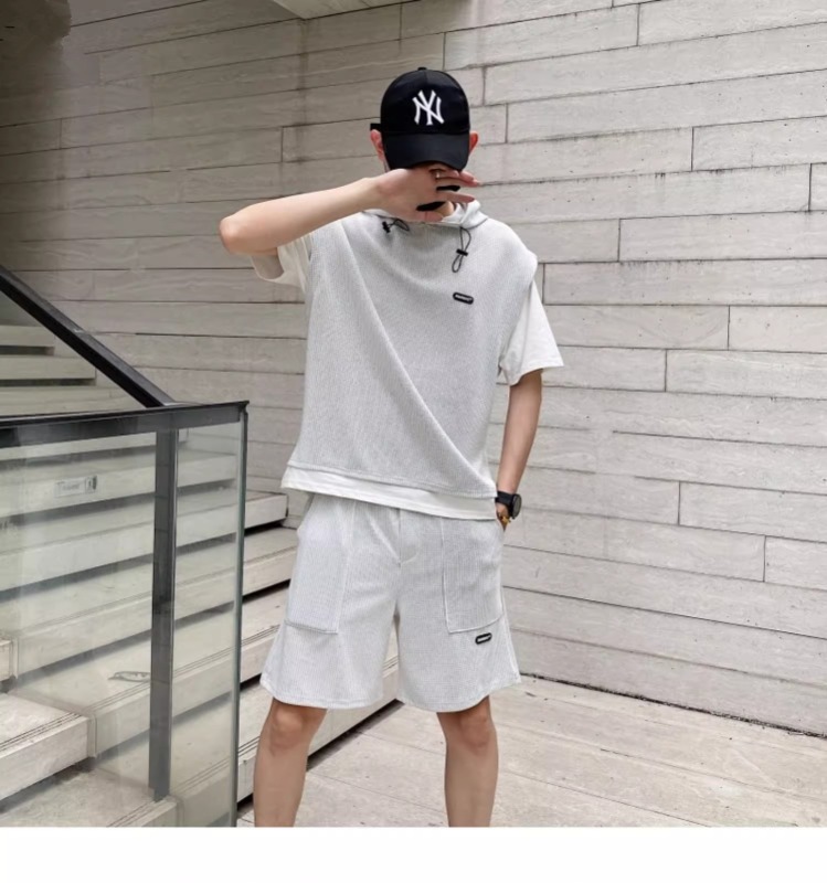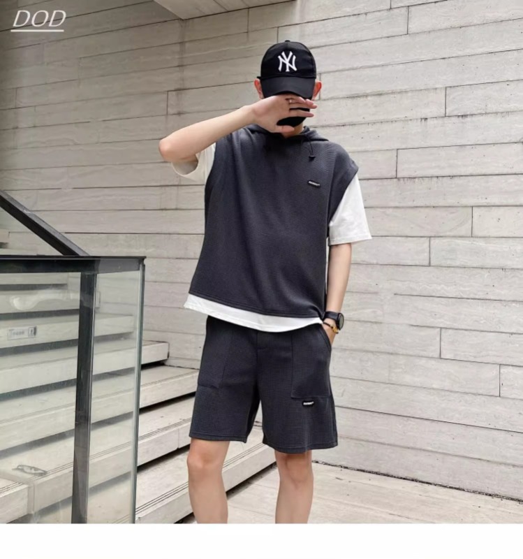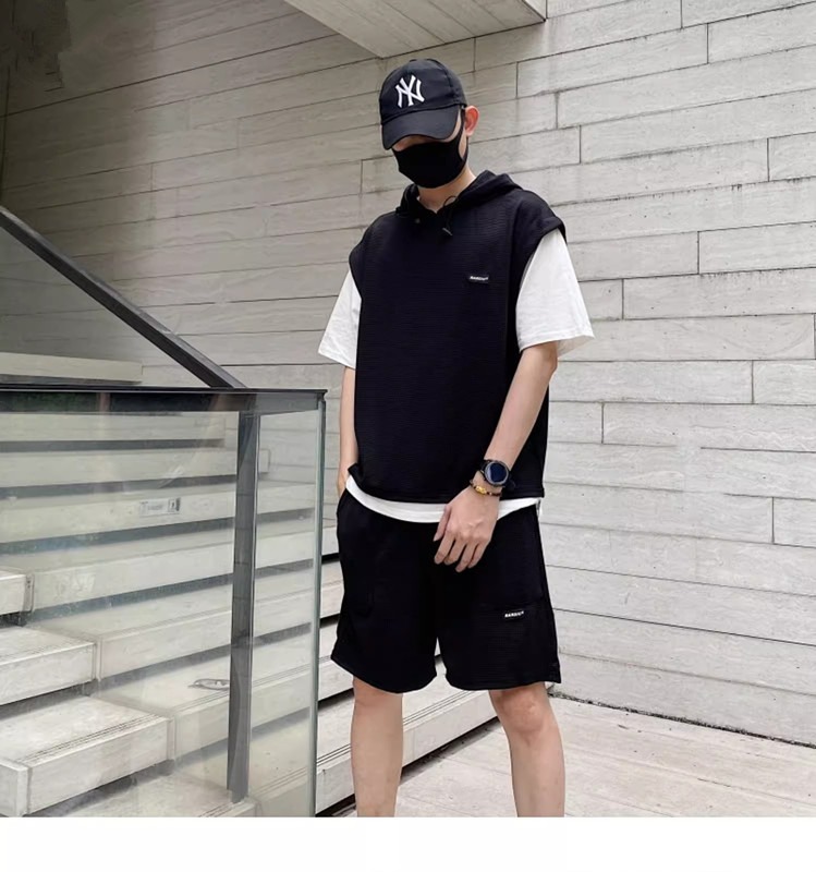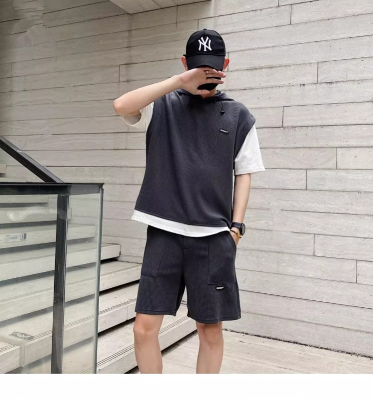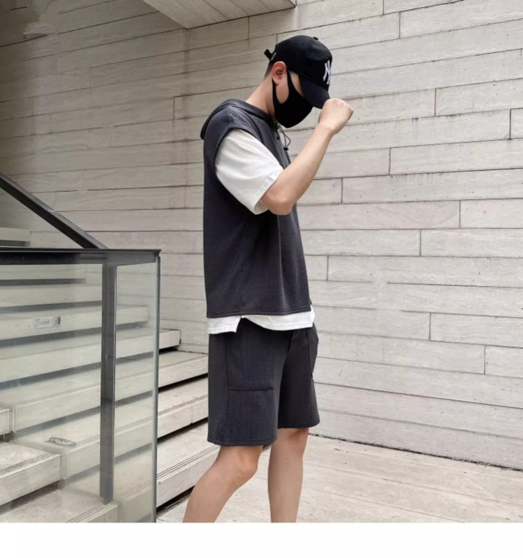 와플 여름 투피스 후드티 반바지 빅사이즈 세트 남성용 ins 투피스 세트 남성 캐주얼 세트스토어 가기