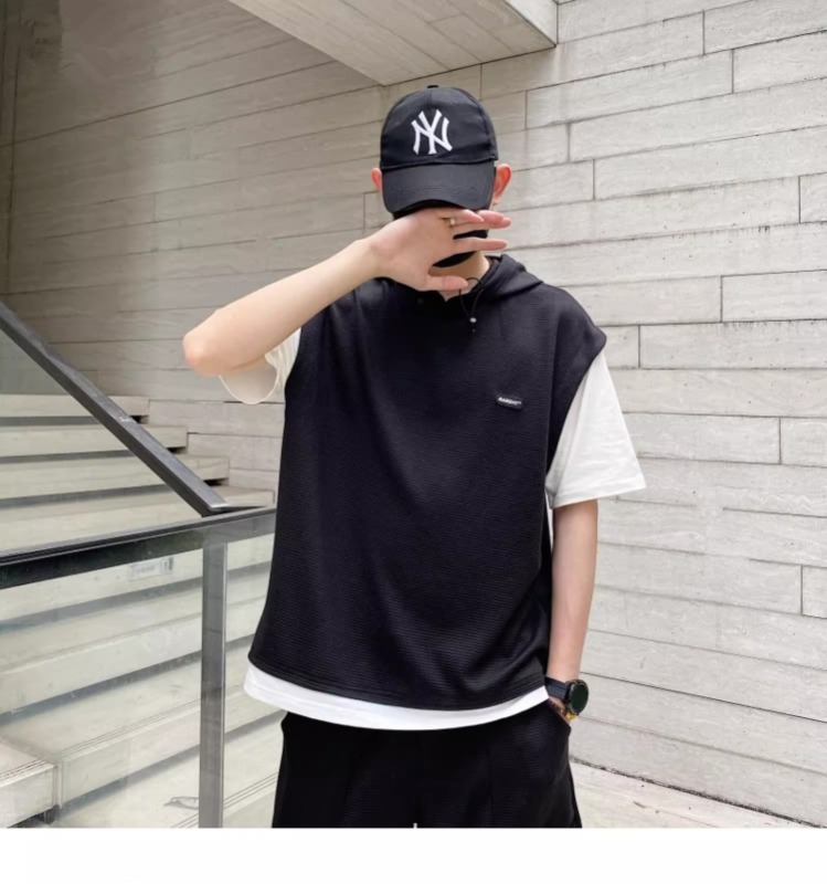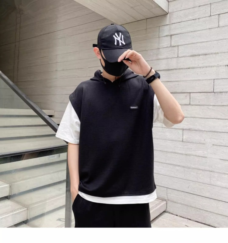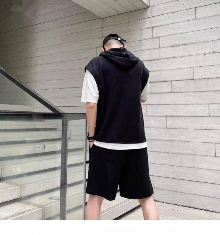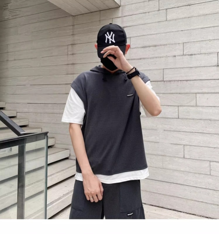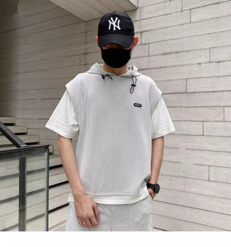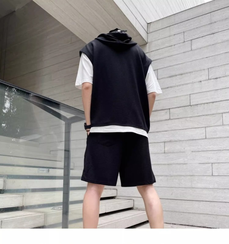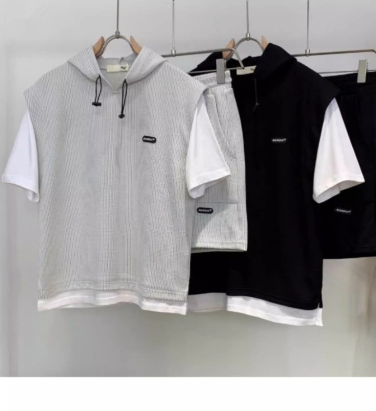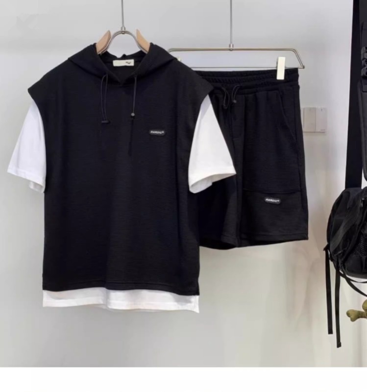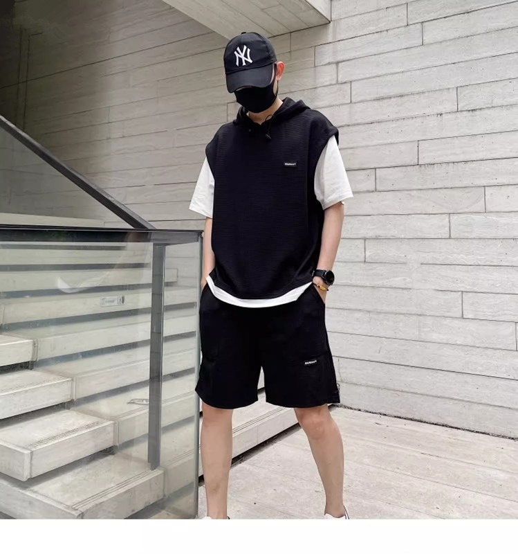 와플 여름 투피스 후드티 반바지 빅사이즈 세트 남성용 ins 투피스 세트 남성 캐주얼 세트스토어 가기