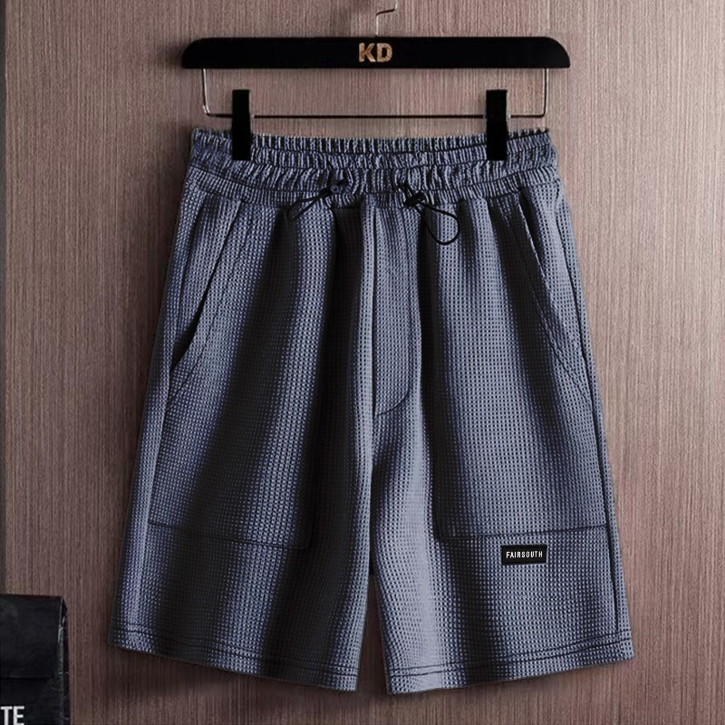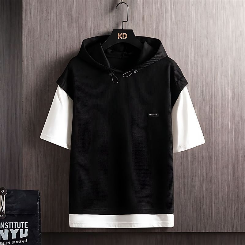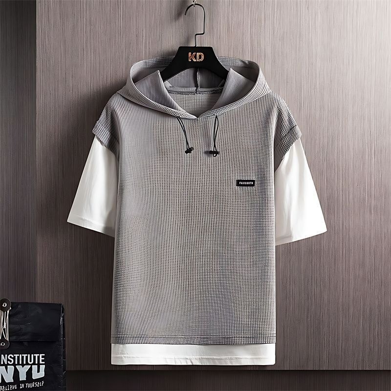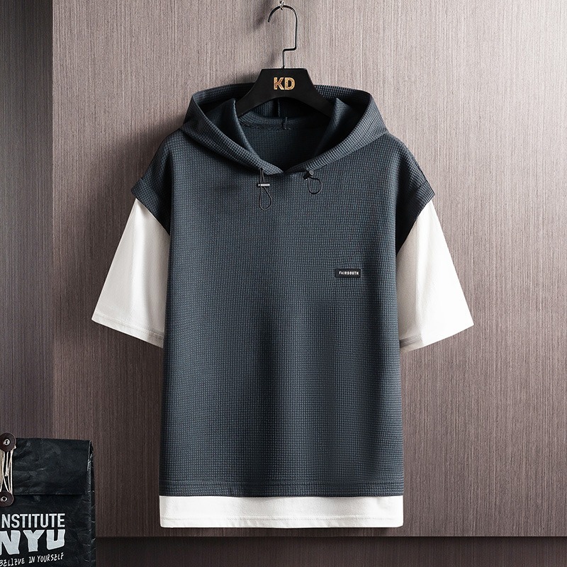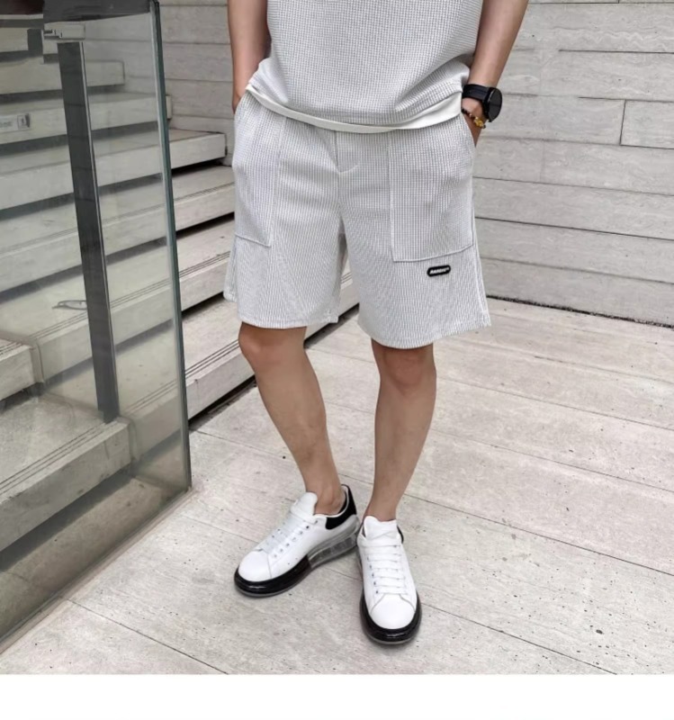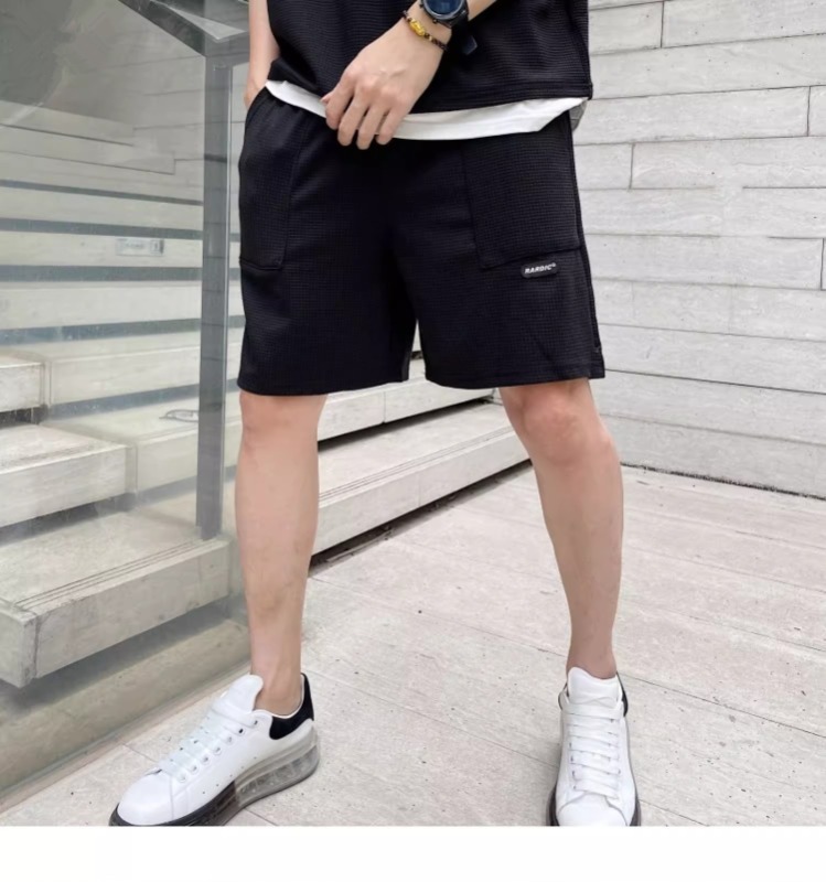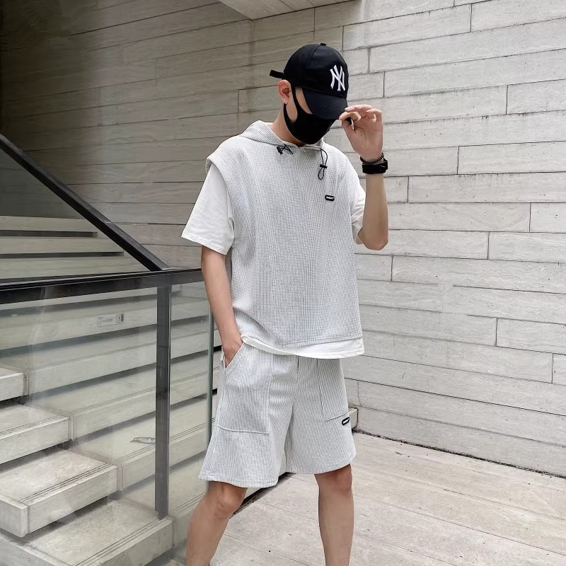 와플 여름 투피스 후드티 반바지 빅사이즈 세트 남성용 ins 투피스 세트 남성 캐주얼 세트