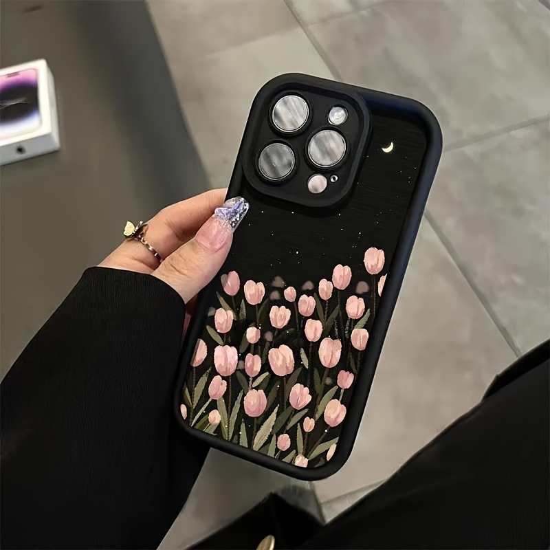 밤 문 스타 핑크 튤립 애플 16 사다리 전화 케이스 15/14/13/12/11 눈