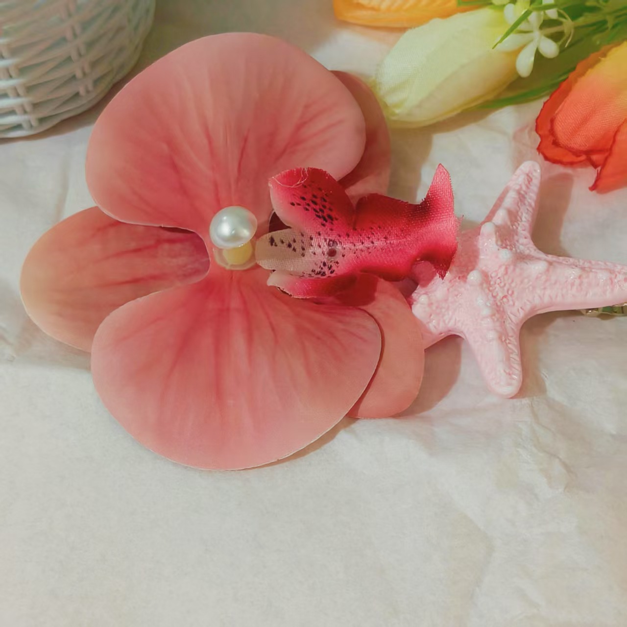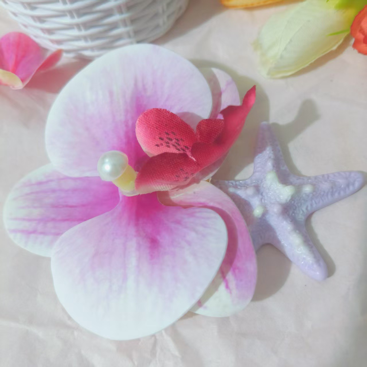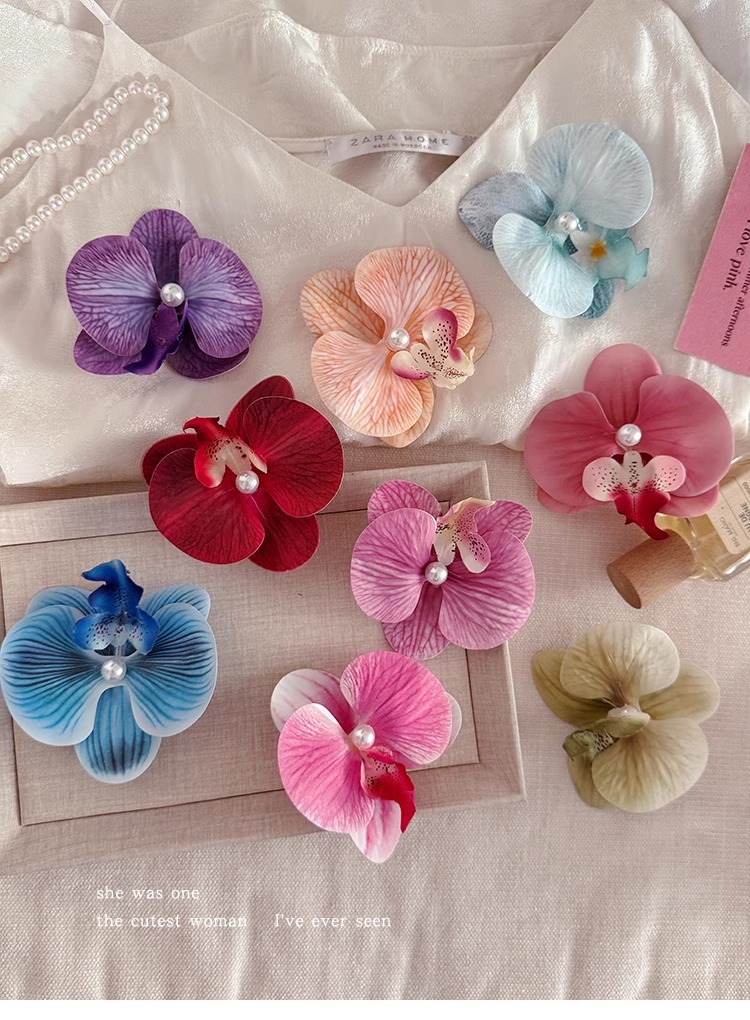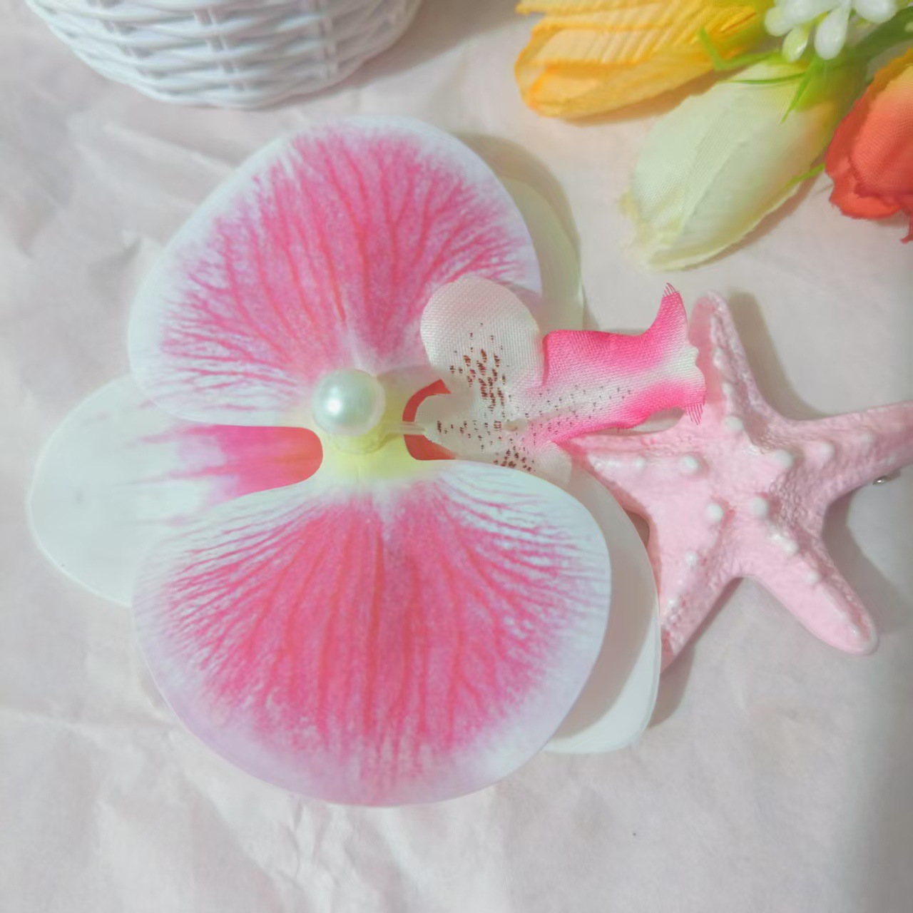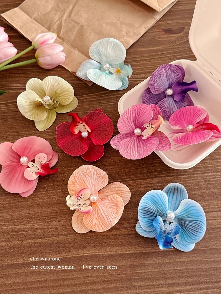 • 그라데이션 로즈 핑크 호접란 보라색 불가사리 머리핀