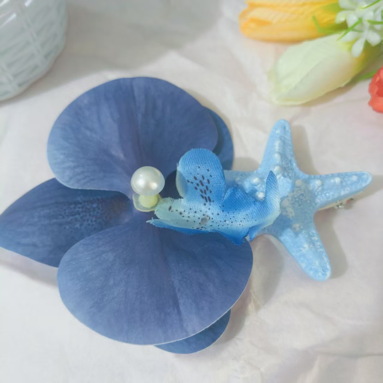 • 진한 파란색 호접란 파란색 불가사리 머리핀