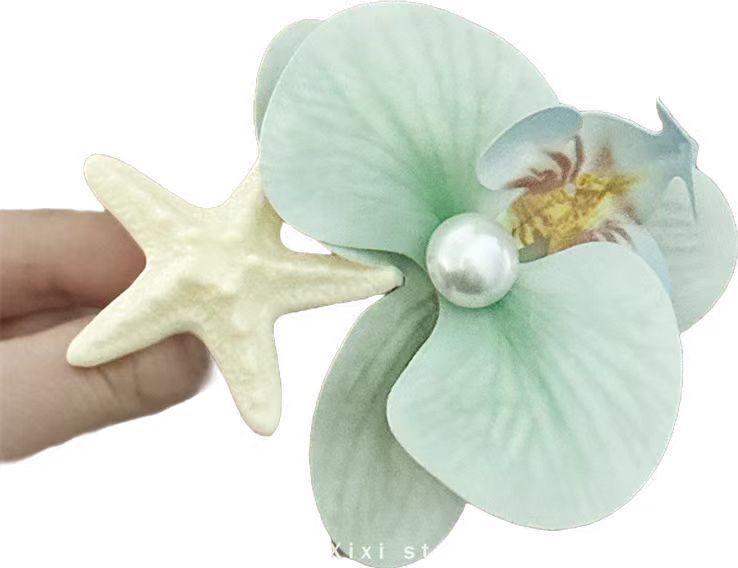 • 연한 녹색 호접란 불가사리 머리핀