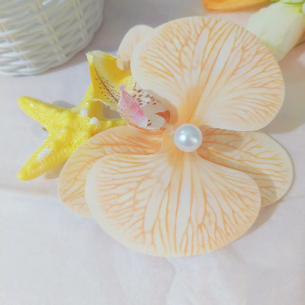 • 샴페인 호접란 노란색 불가사리 머리핀