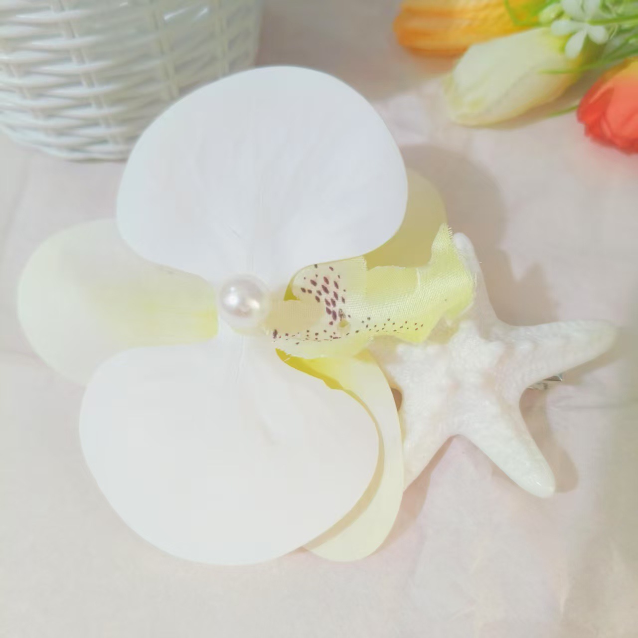• 흰 호접란과 불가사리 머리핀