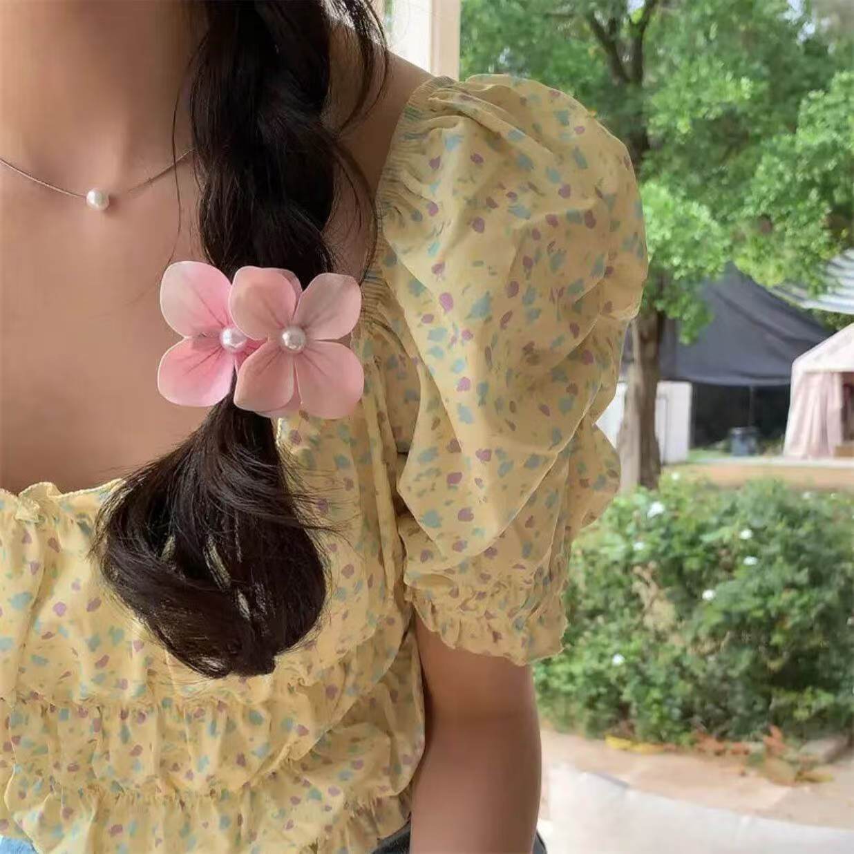 • 플루메리아 진주 머리끈