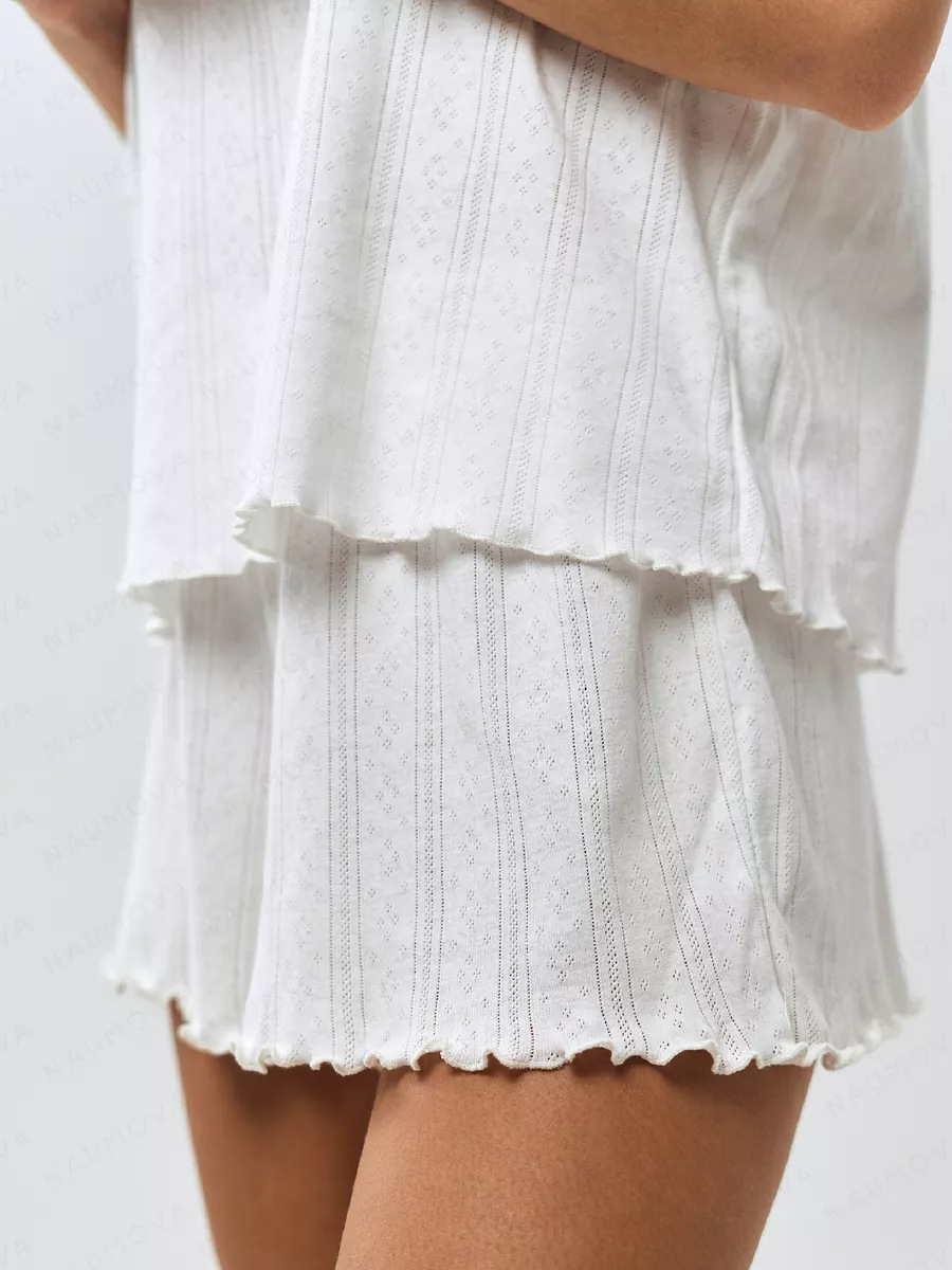 여름 여성을 위한 국경 간 인기 유럽 및 미국 잠옷, 면, 편안한 컬링, 7부 소매 반바지, 홈웨어 세트