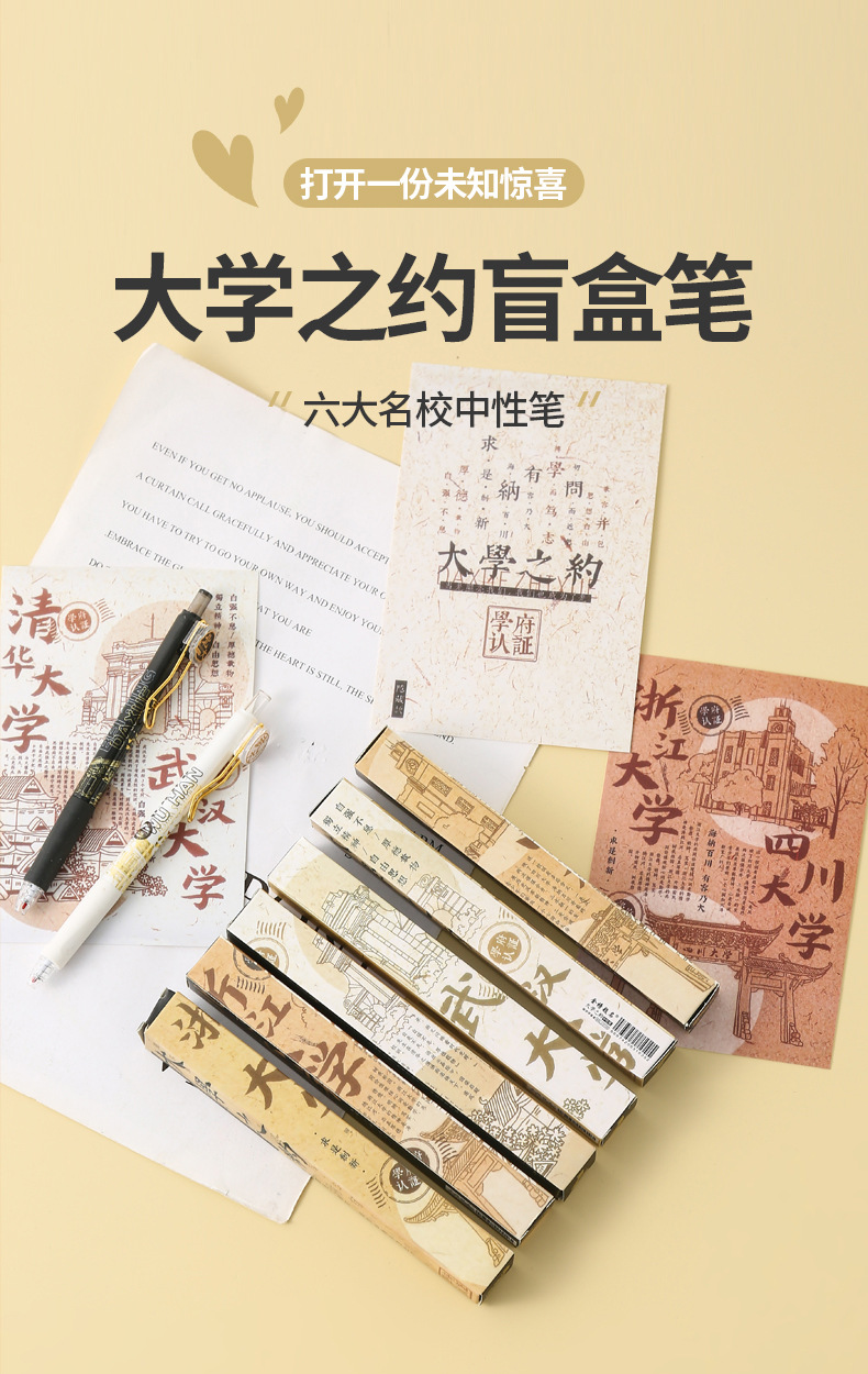 블라인드 박스 새로운 대학 칭화 블랙 0.5mm 젤 펜 유명한 학교 크리에이티브 프레스 사인 펜 높은 색상 가치