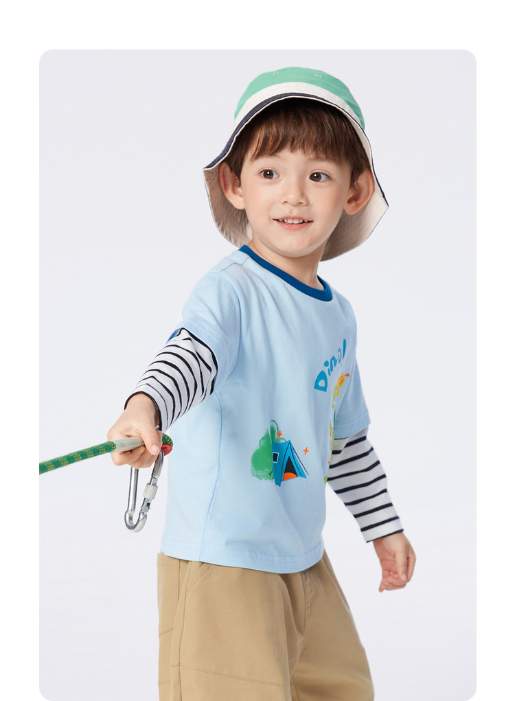남학생 긴팔 티셔츠 2025 년 봄 · 가을 새 어린이 가짜 투피스 크루넥 패셔너블 코튼 올매치 3-7 세 어린이스토어 가기
