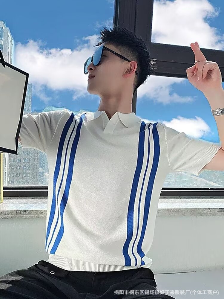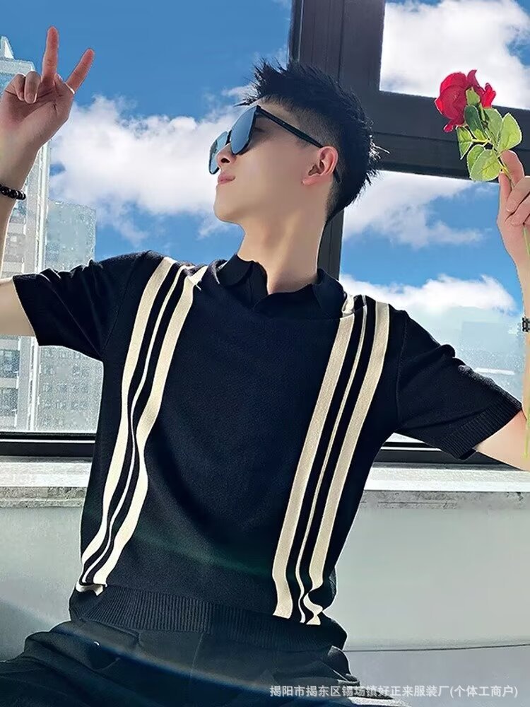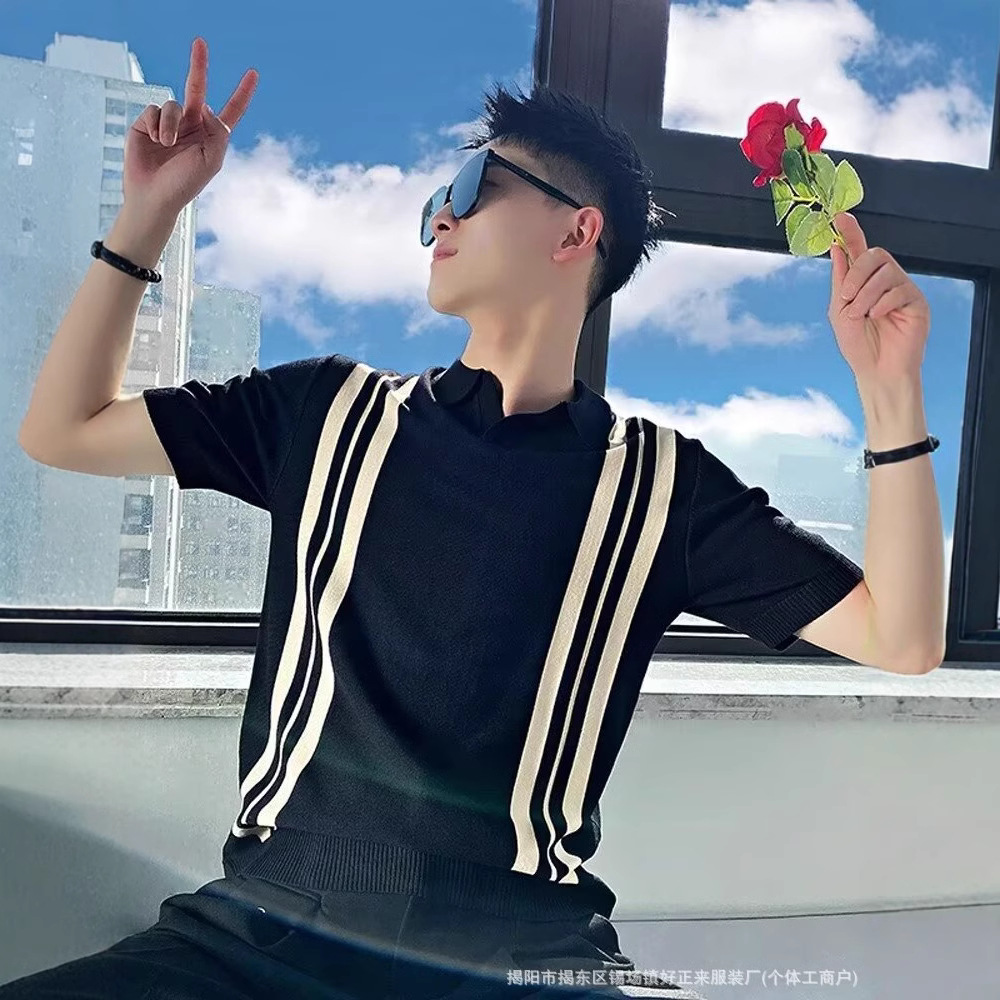 예술적 트렌드 2023 반팔 남성 단색 청소년 인기있는 표준 여름 기질 트렌디 폴로 셔츠 새로운 도착 하라주쿠