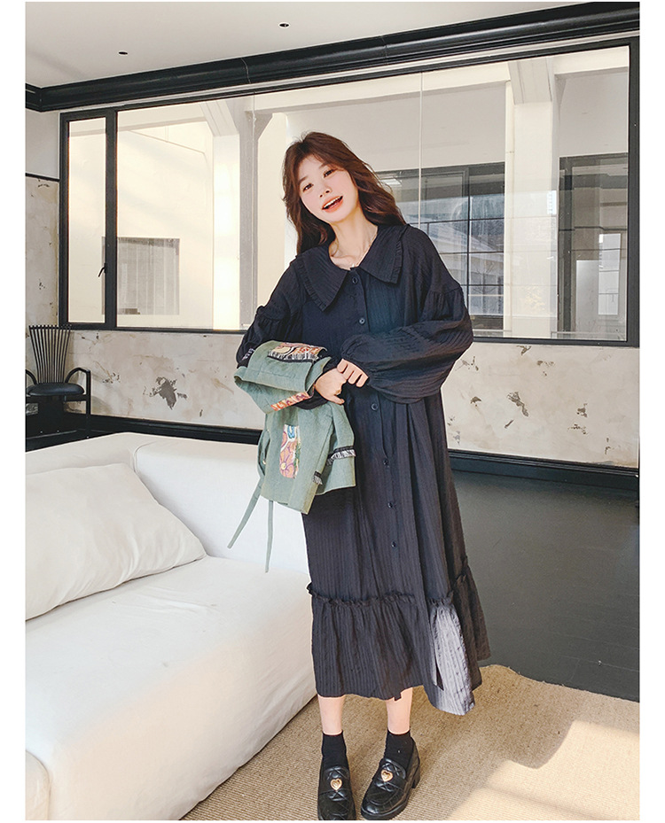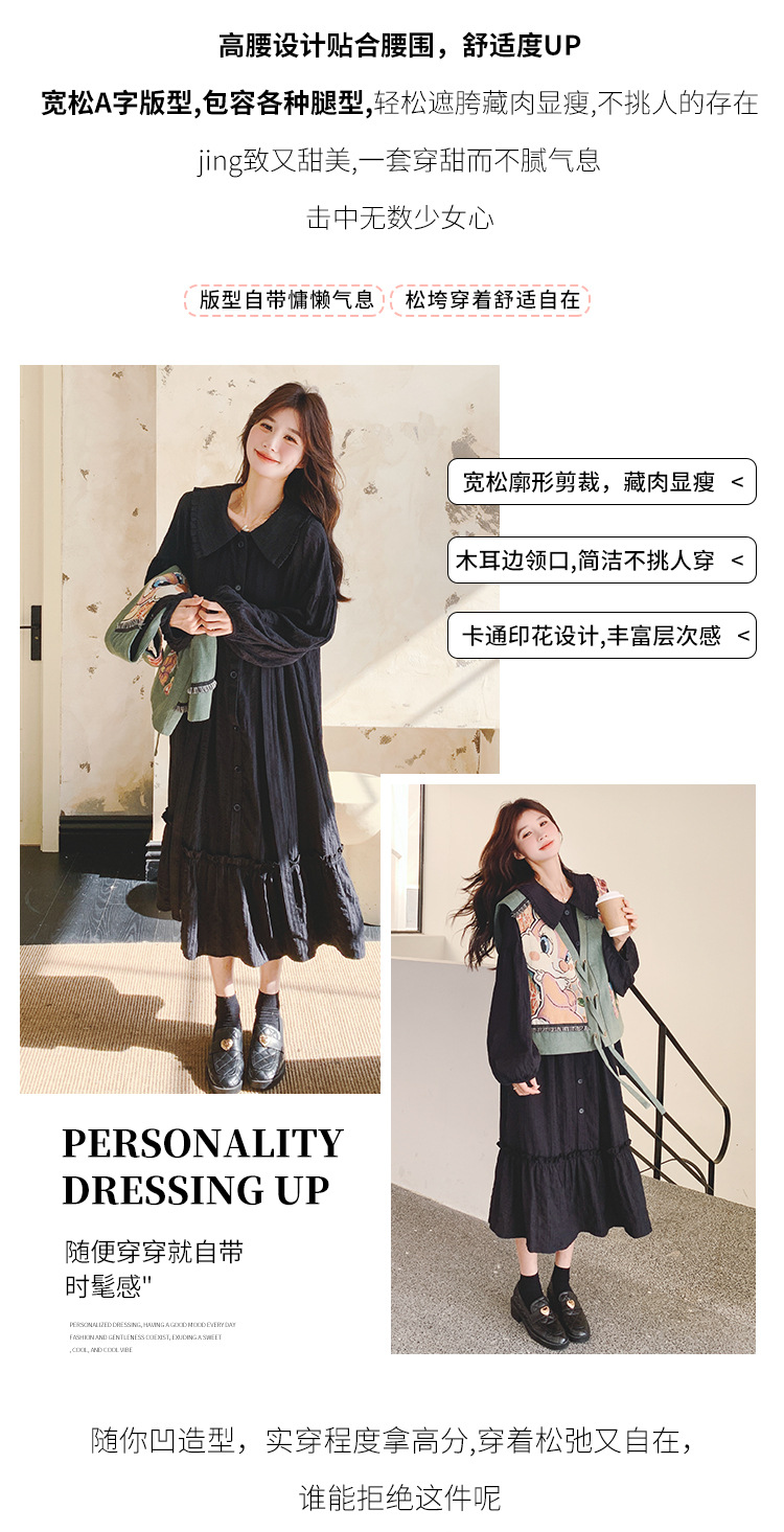 검은 프랑스 레트로 인형 칼라 원피스 세트 여성의 2025 년 초 봄 새 만화 인쇄 조끼 투피스 세트