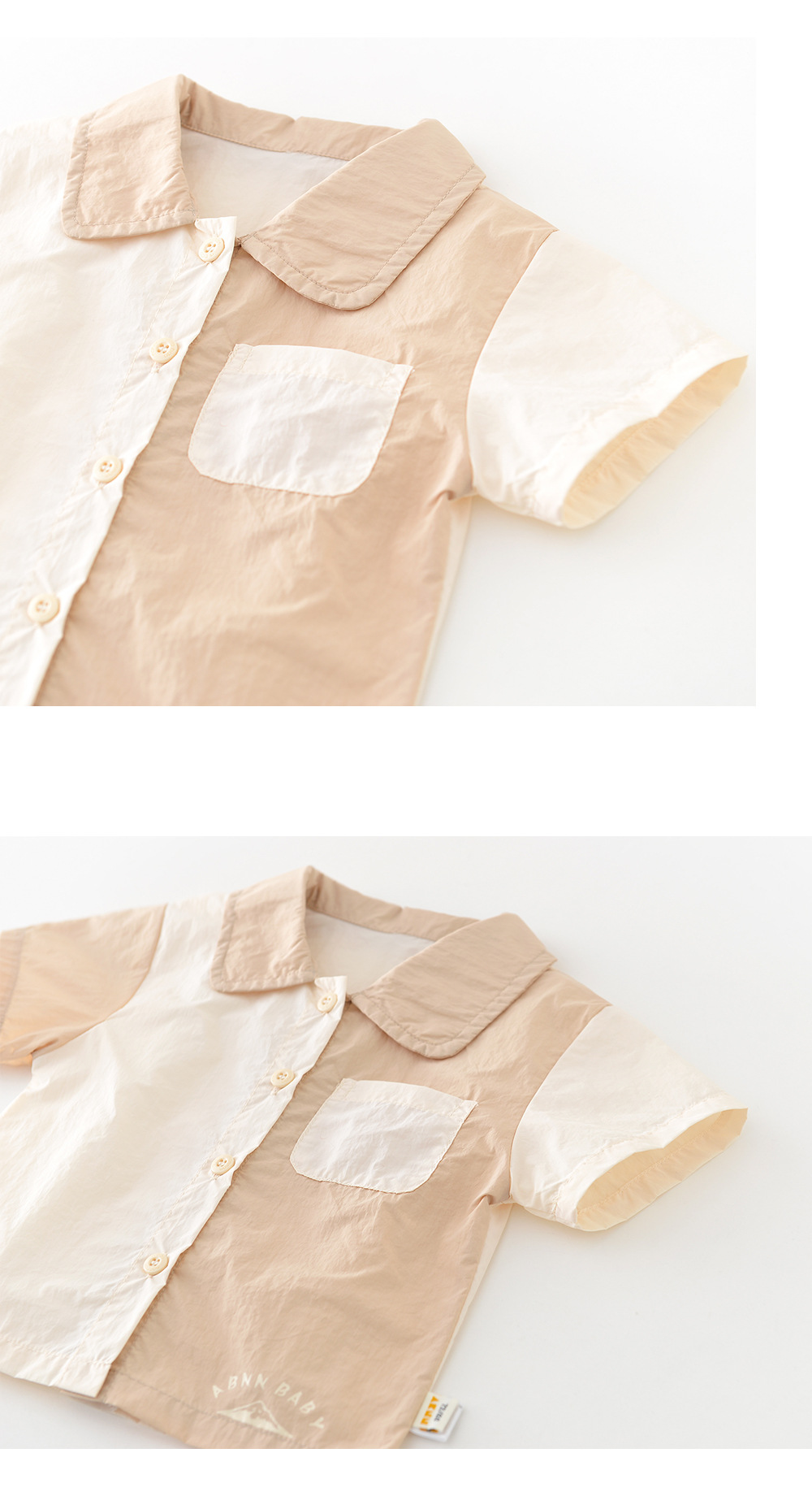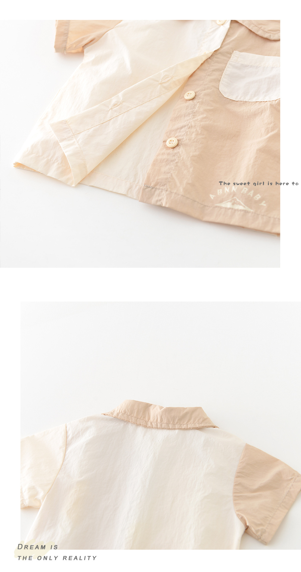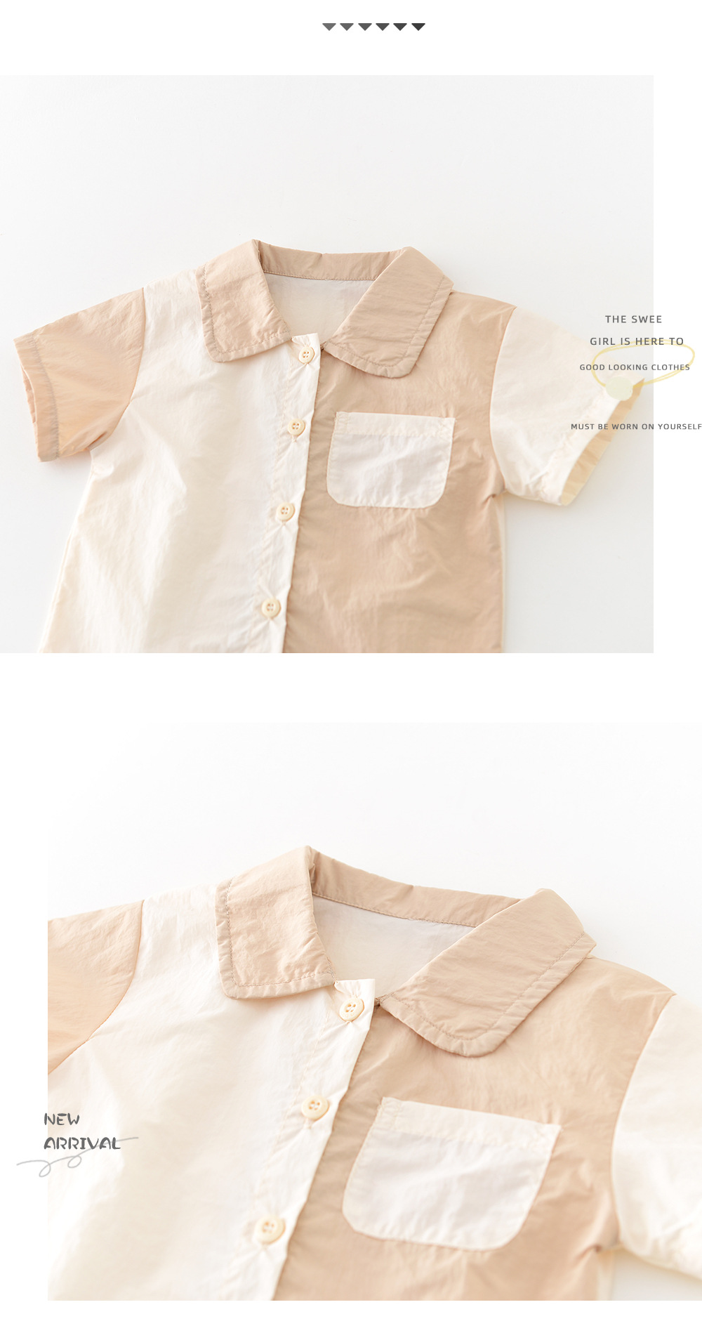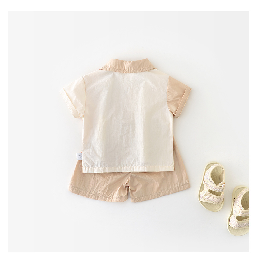 2025 년 여름 새로운 어린이 쌀 커피 컬러 매칭 세트 소년 아기 패션 옷깃 투피스 52738스토어 가기