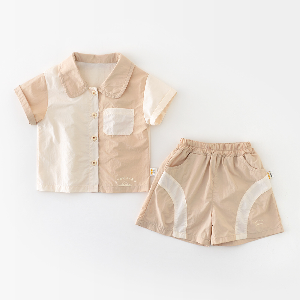 2025 년 여름 새로운 어린이 쌀 커피 컬러 매칭 세트 소년 아기 패션 옷깃 투피스 52738