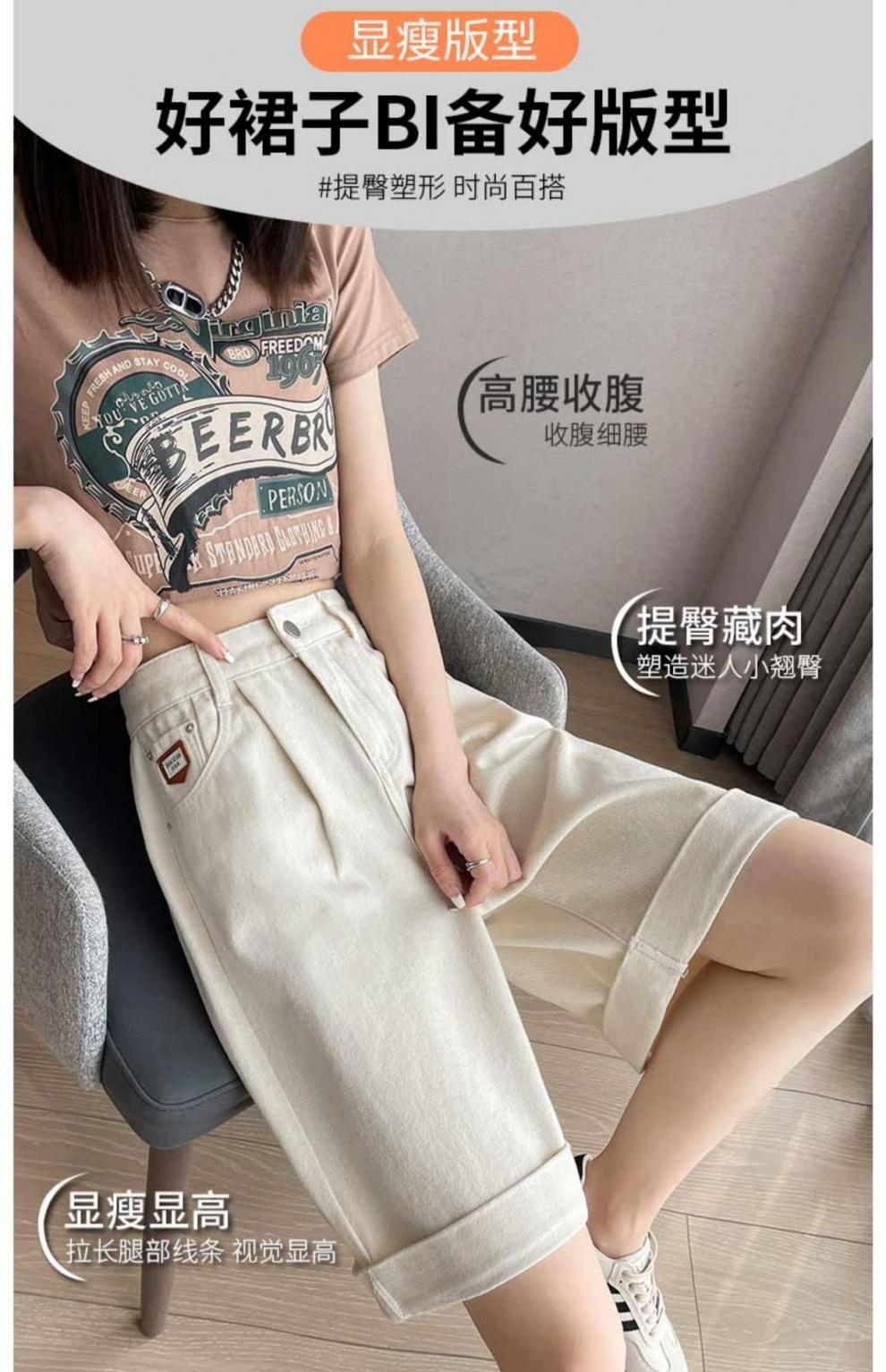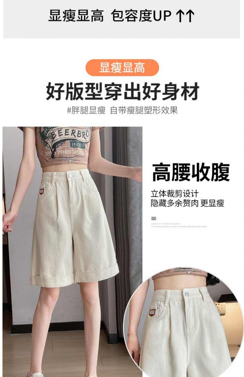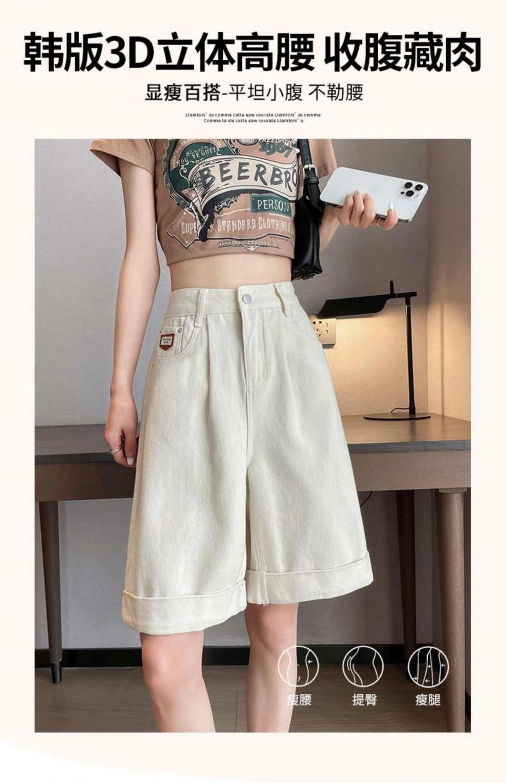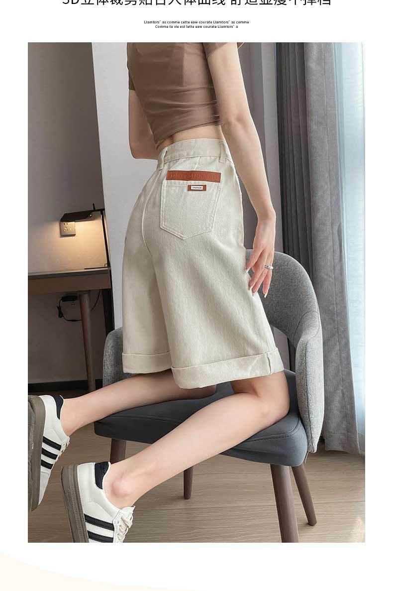 여자 엉덩이 5 점 데님 반바지 여름 2024 새로운 높은 허리 슬리밍 배 모양의 바디 컬 느슨한 넓은 다리 중간 길이 바지스토어 가기