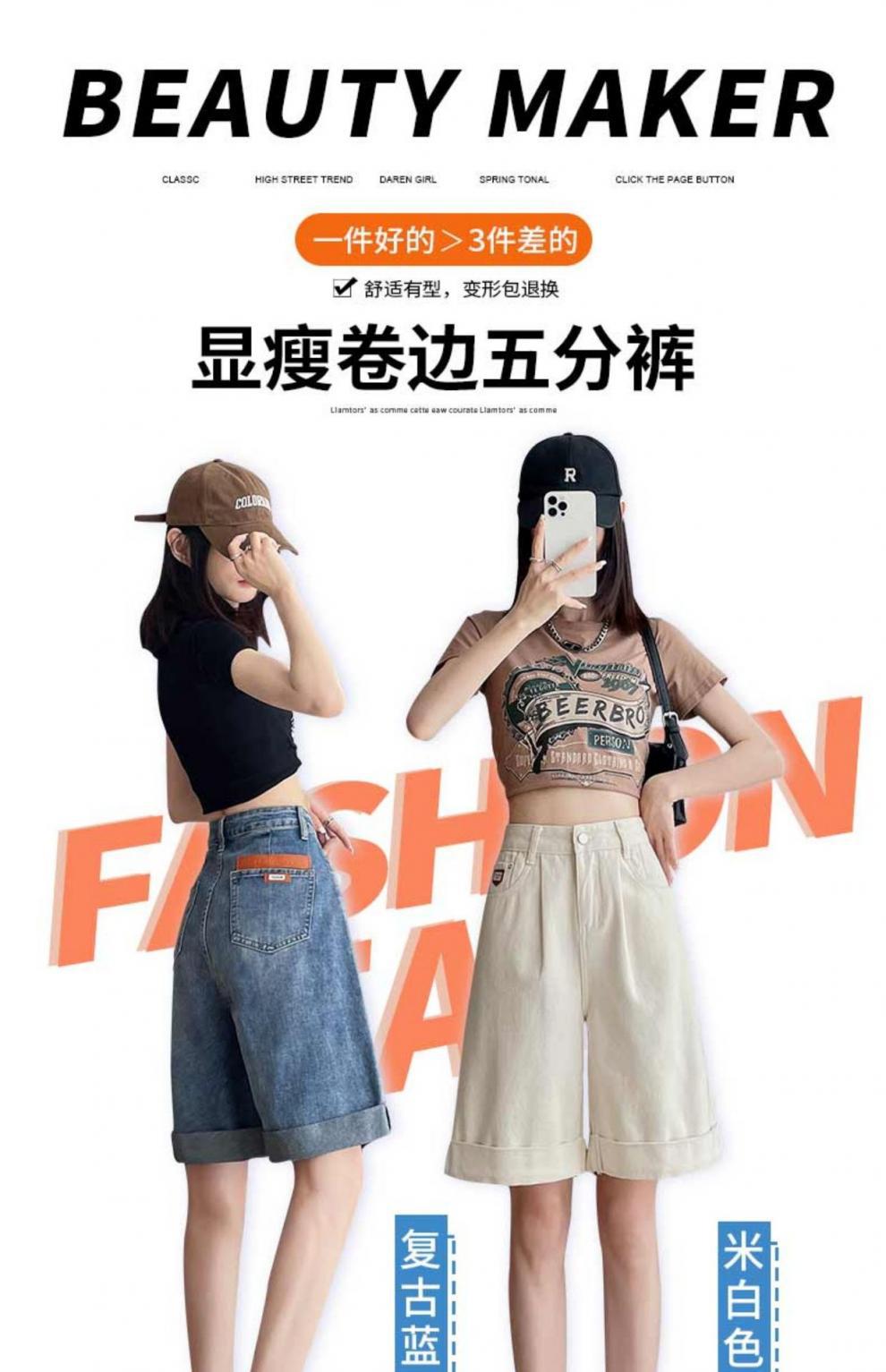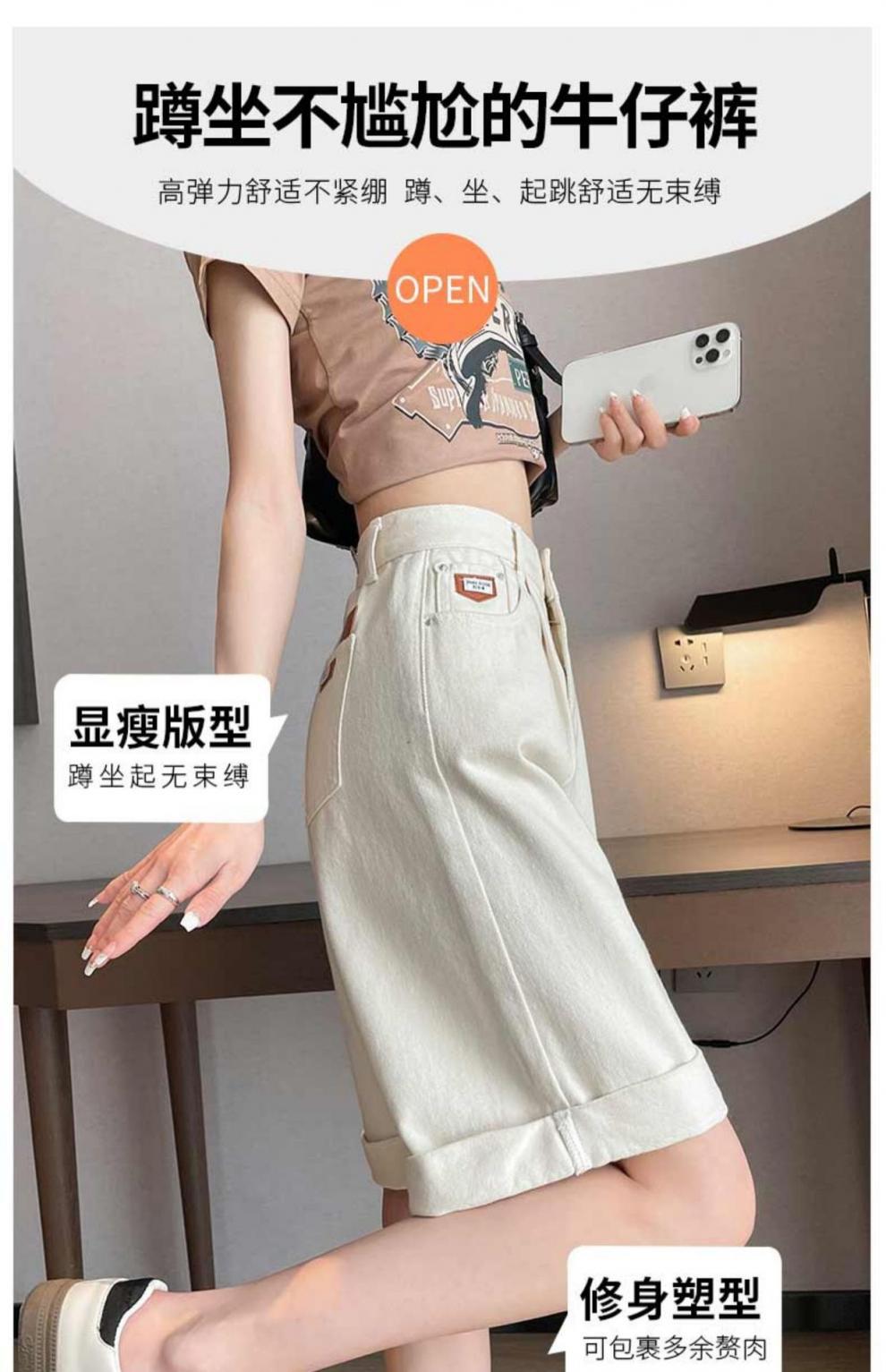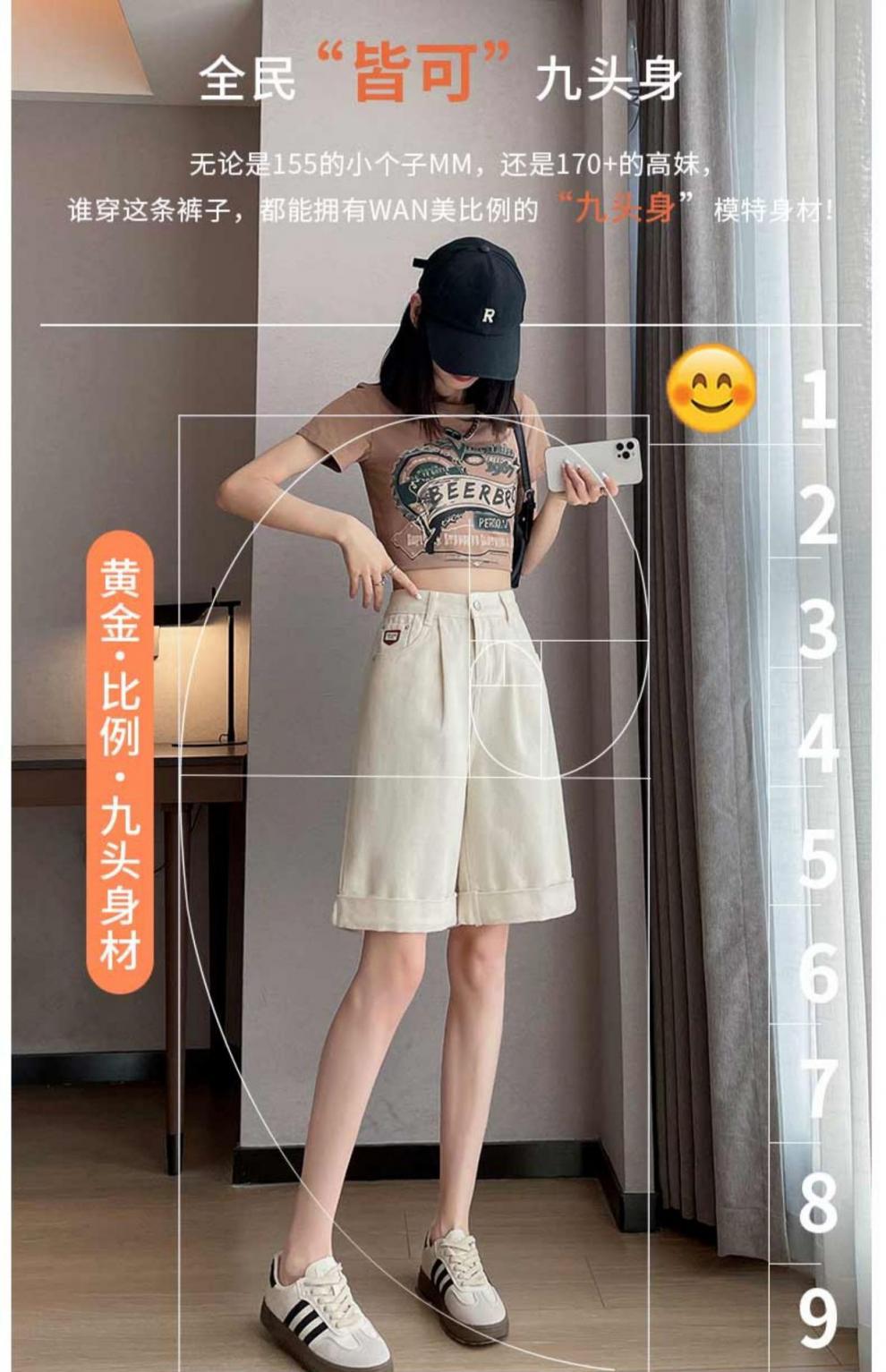 여자 엉덩이 5 점 데님 반바지 여름 2024 새로운 높은 허리 슬리밍 배 모양의 바디 컬 느슨한 넓은 다리 중간 길이 바지스토어 가기
