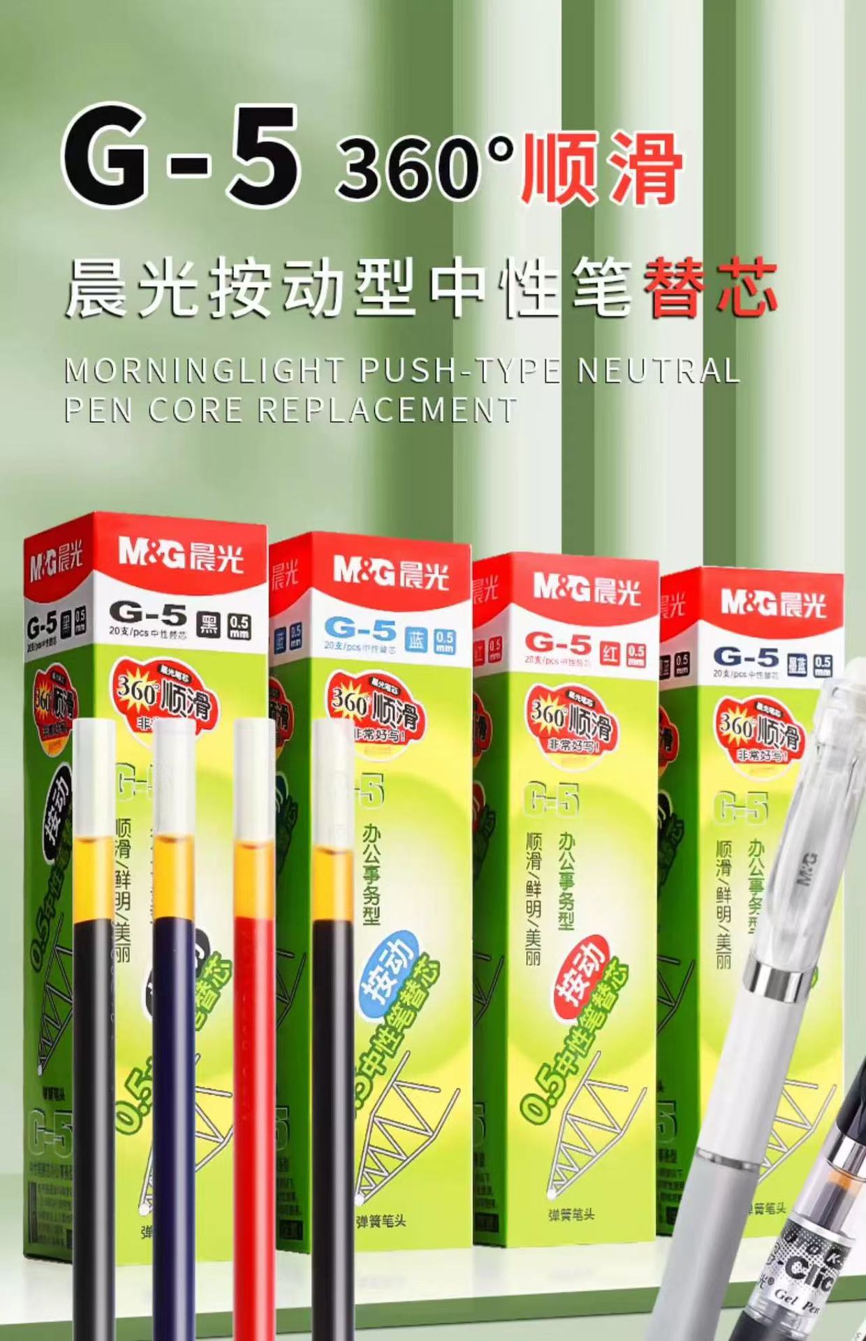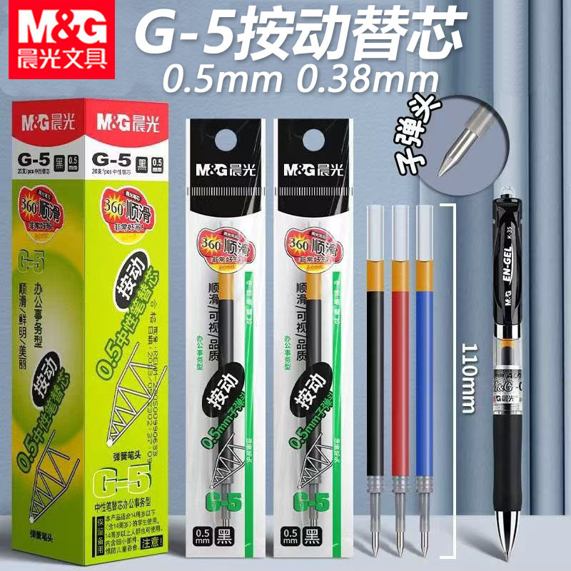 Chenguang 프레스 리필 0.5mm 총알 헤드 프레스 펜 중립 리필 빠른 건조 리필 대용량 도매 G5
