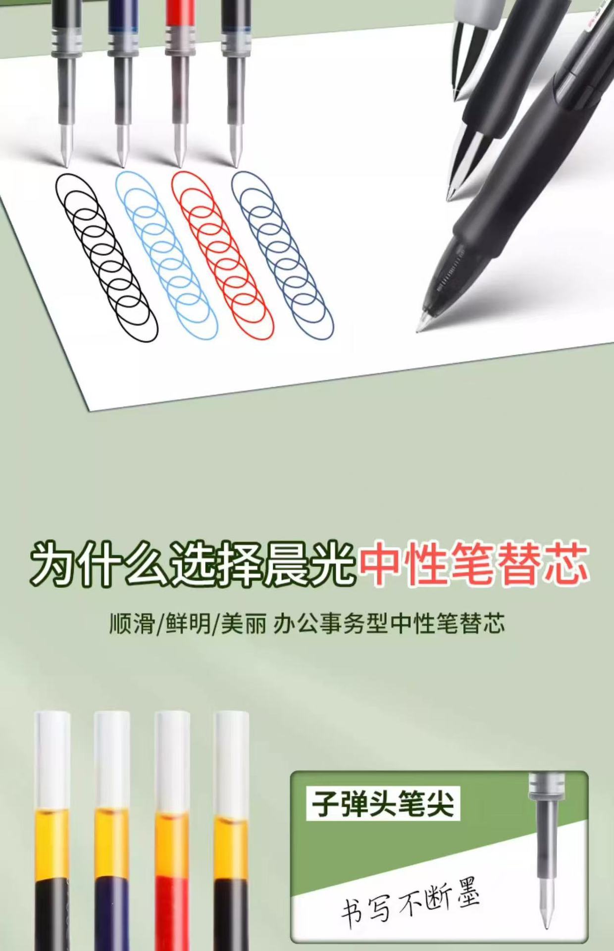 Chenguang 프레스 리필 0.5mm 총알 헤드 프레스 펜 중립 리필 빠른 건조 리필 대용량 도매 G5스토어 가기