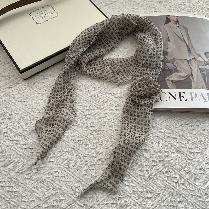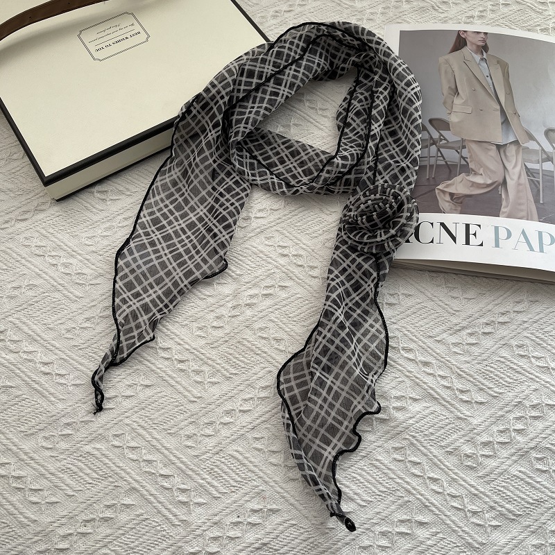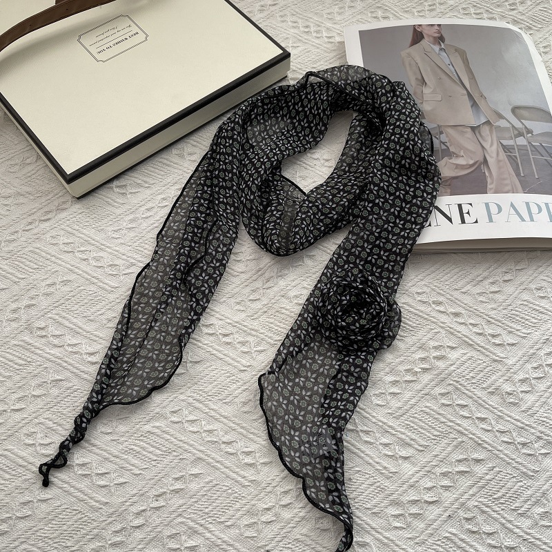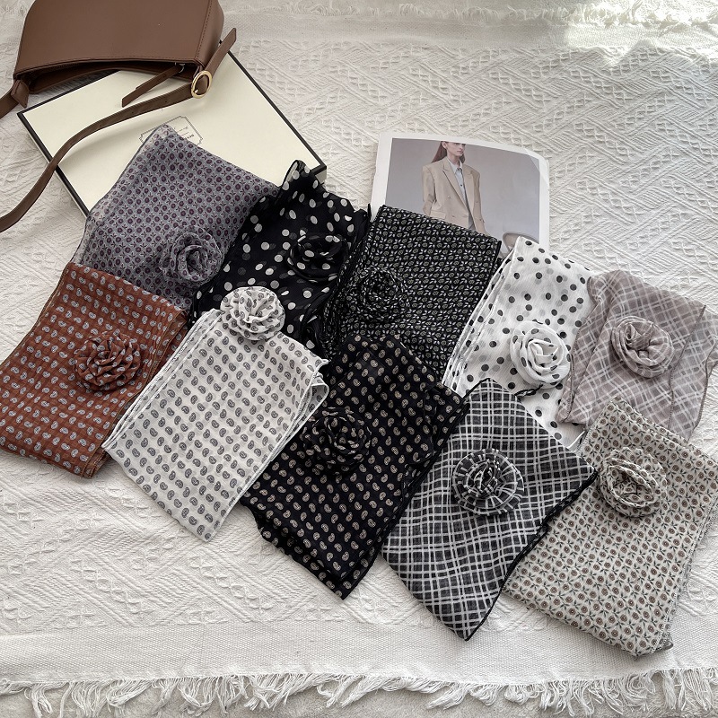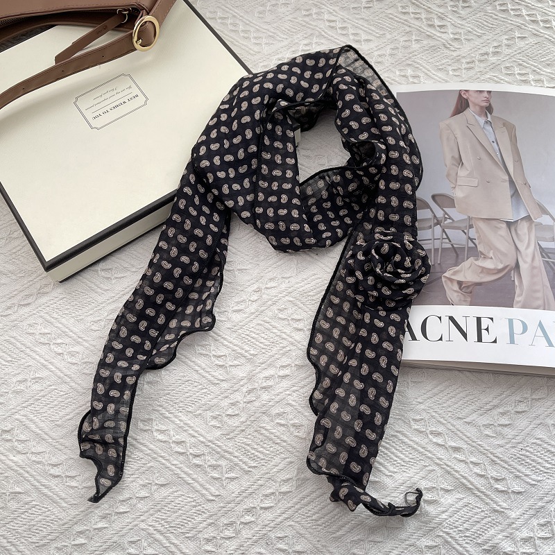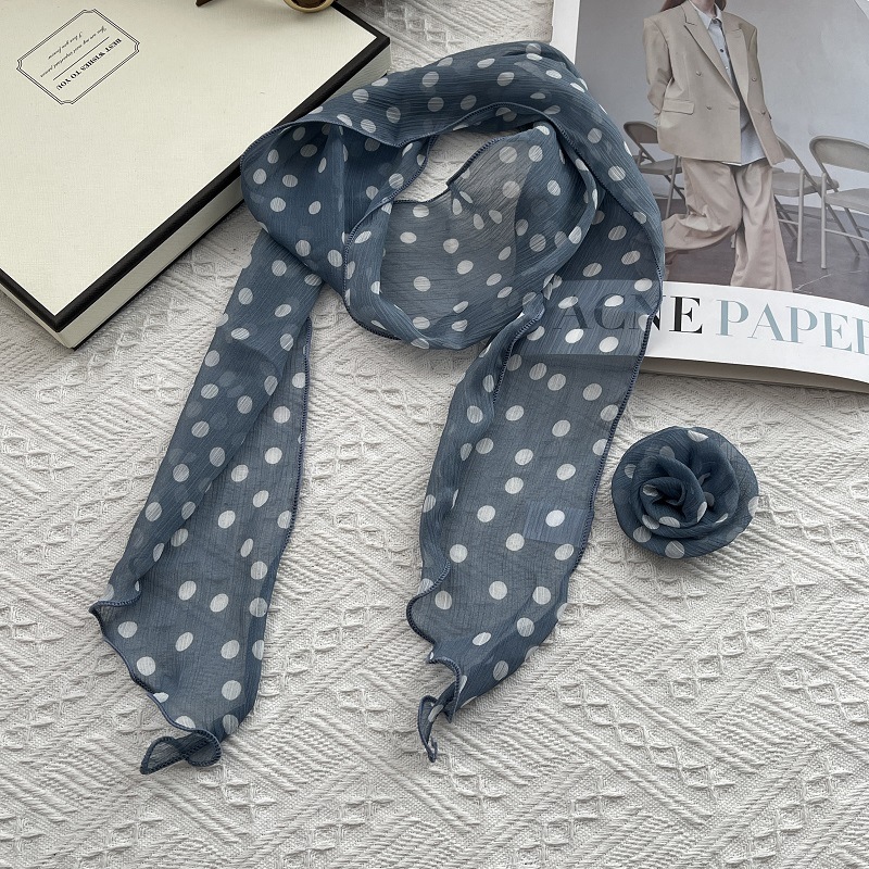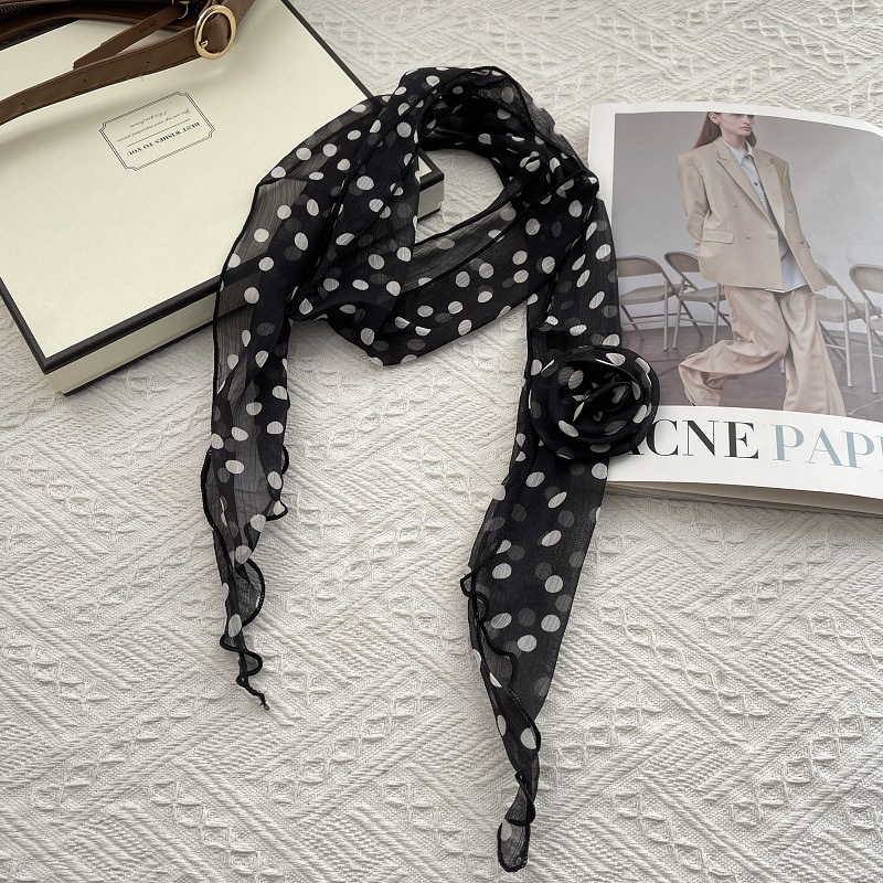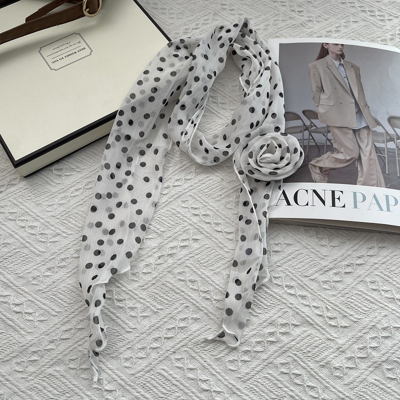 얇고 긴 여름용 쉬폰 스카프 여성용 봄 가을 얇은 장식용 목 보호 스카프 흑백 물방울 무늬 배색 스카프스토어 가기