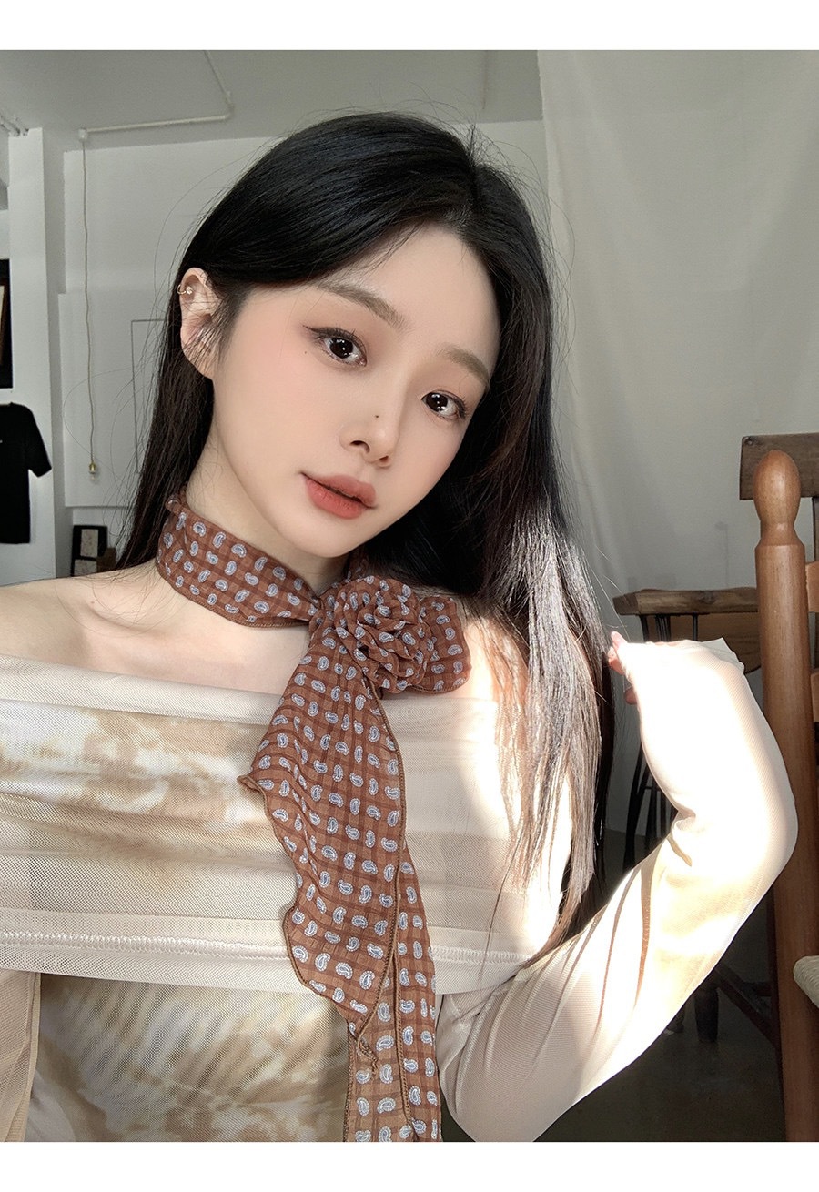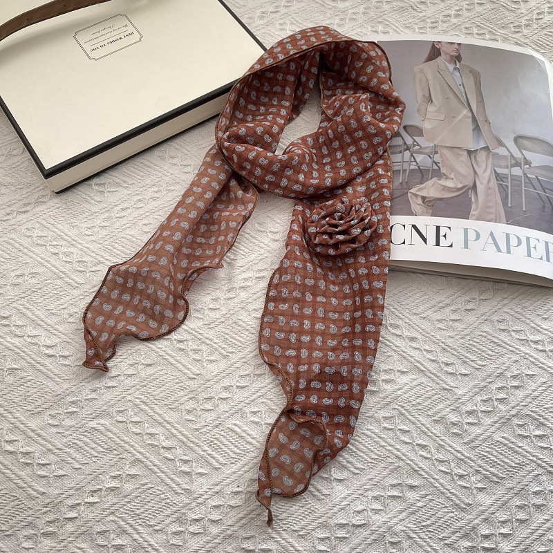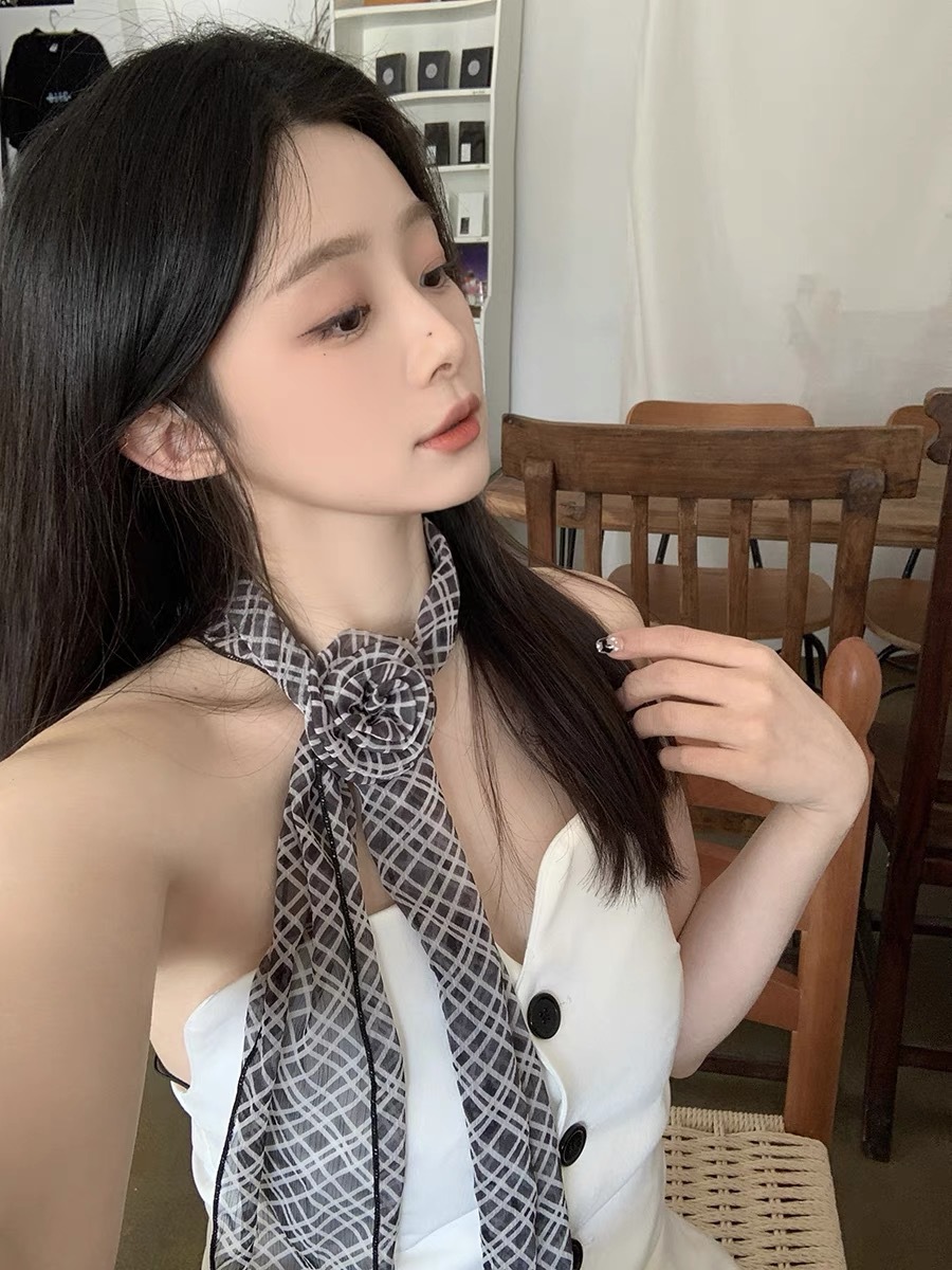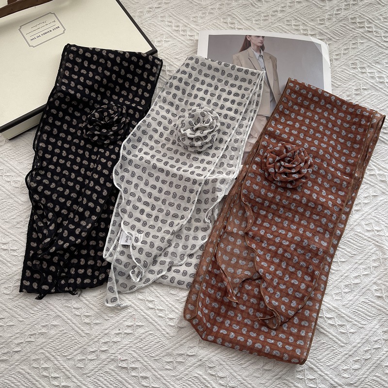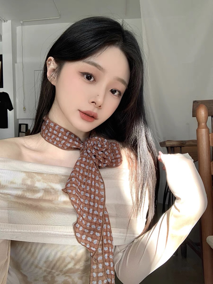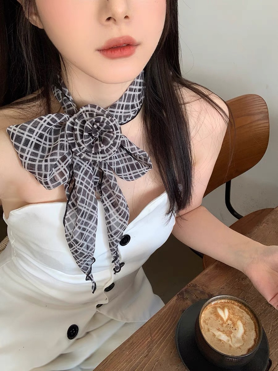 얇고 긴 여름용 쉬폰 스카프 여성용 봄 가을 얇은 장식용 목 보호 스카프 흑백 물방울 무늬 배색 스카프스토어 가기