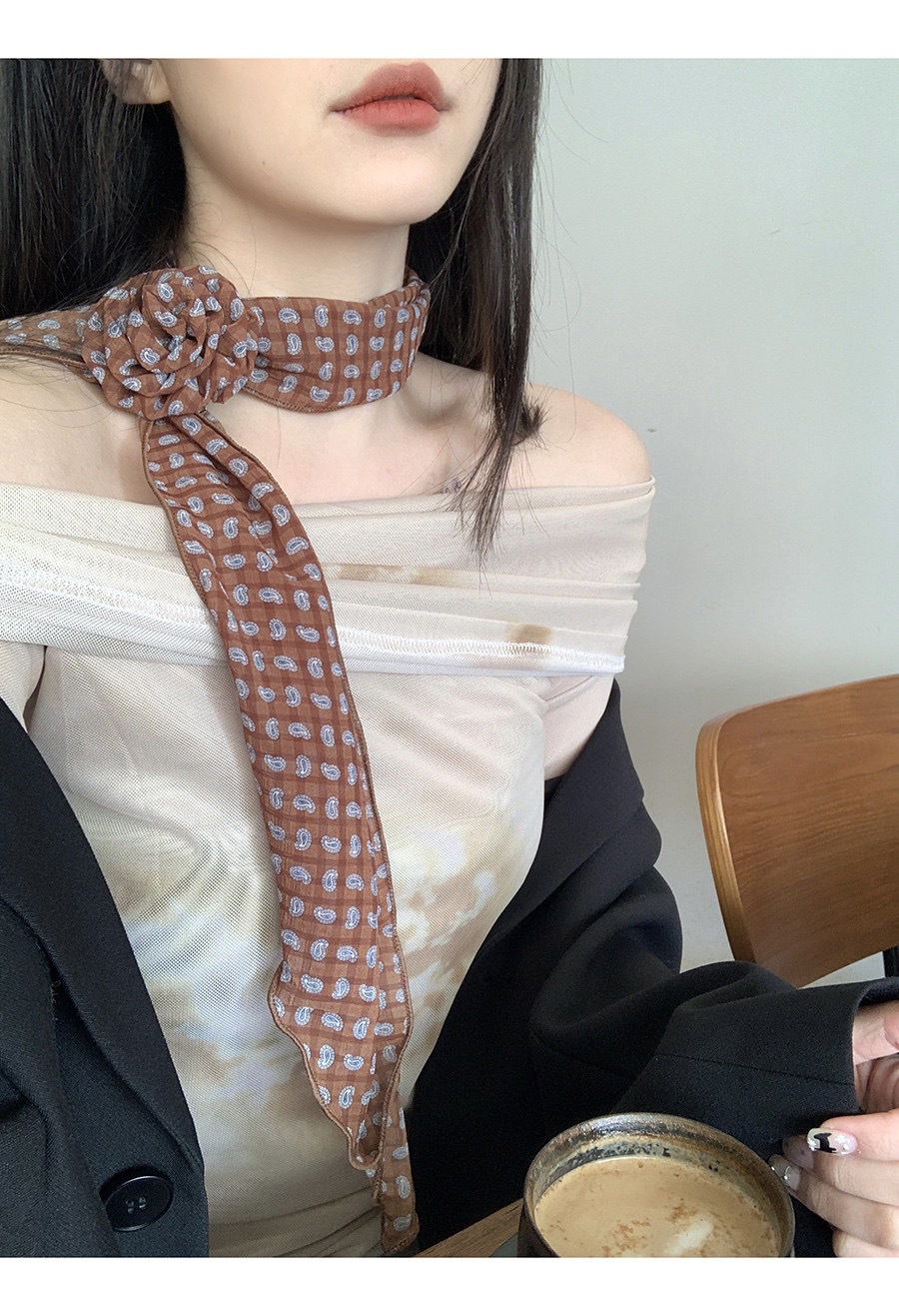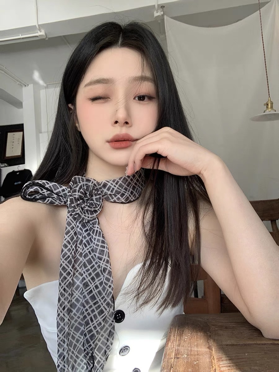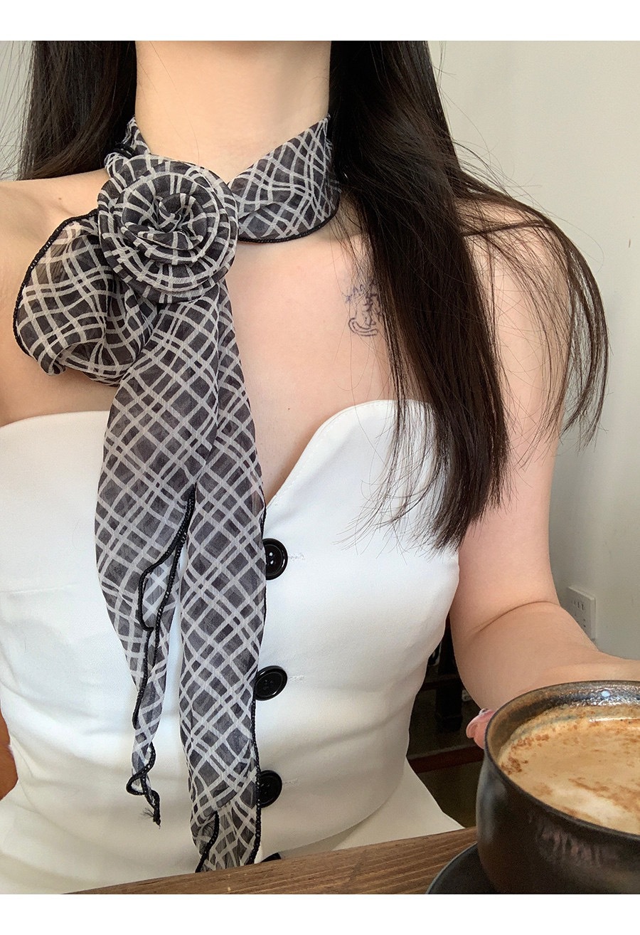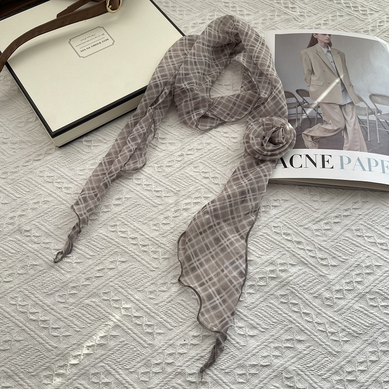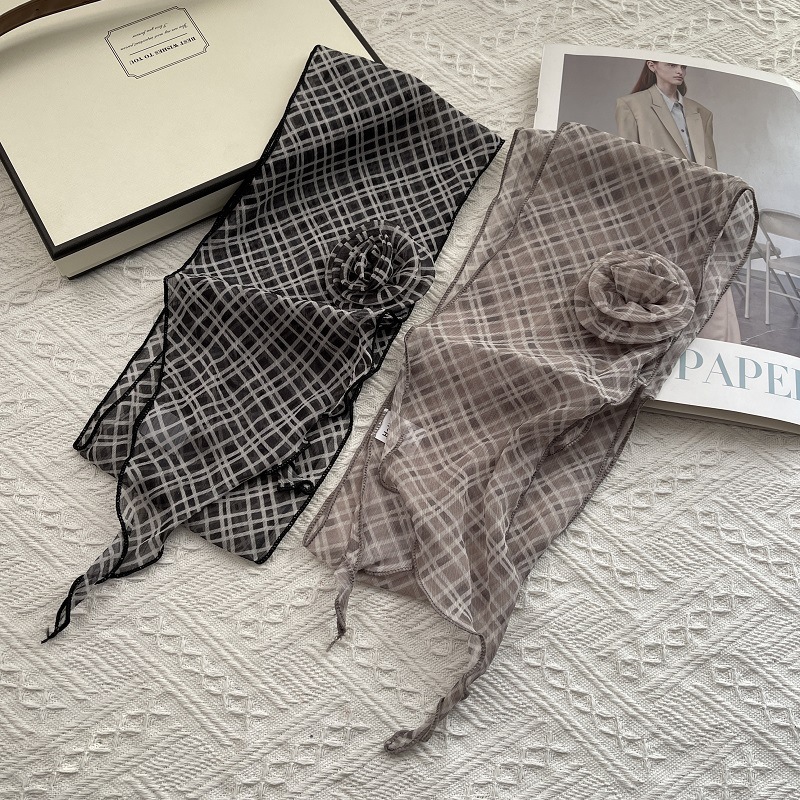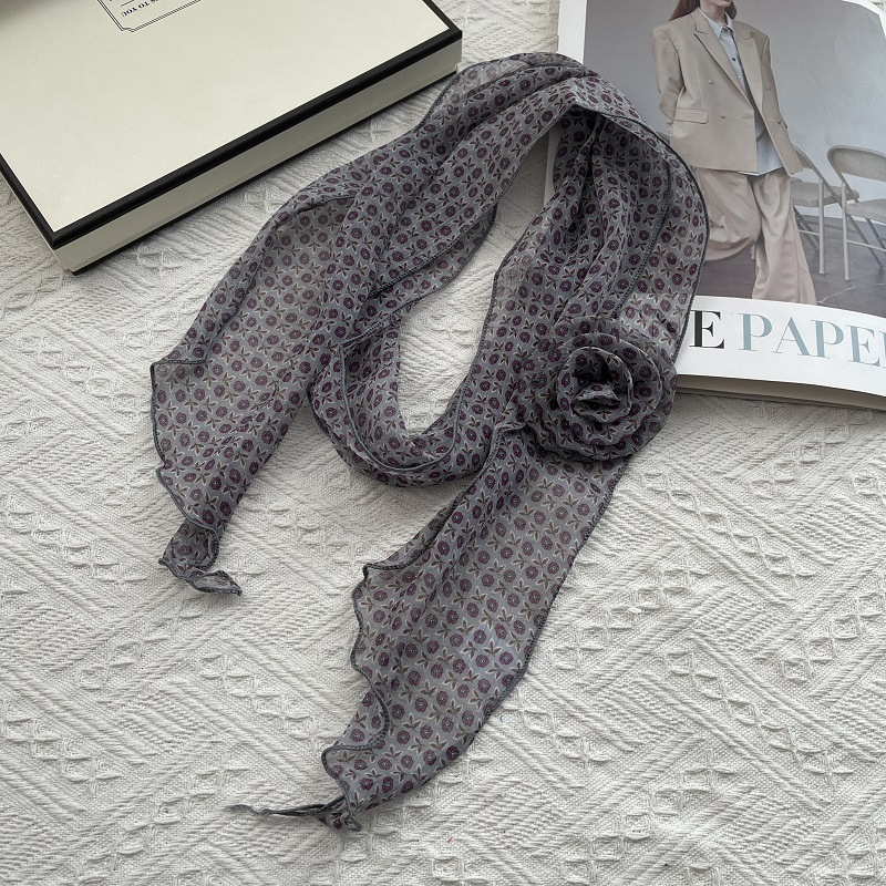 얇고 긴 여름용 쉬폰 스카프 여성용 봄 가을 얇은 장식용 목 보호 스카프 흑백 물방울 무늬 배색 스카프스토어 가기