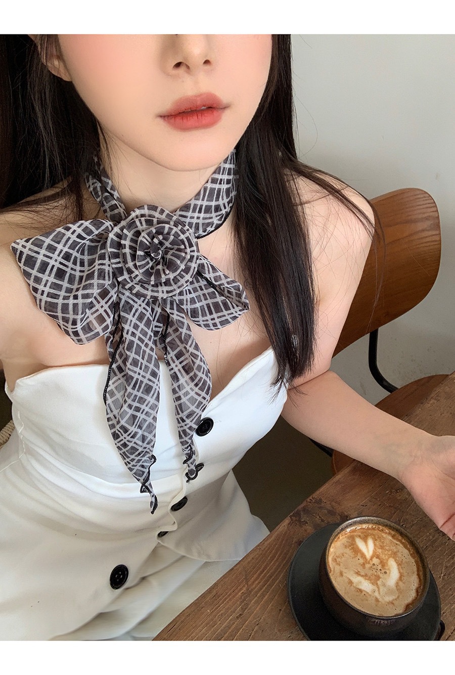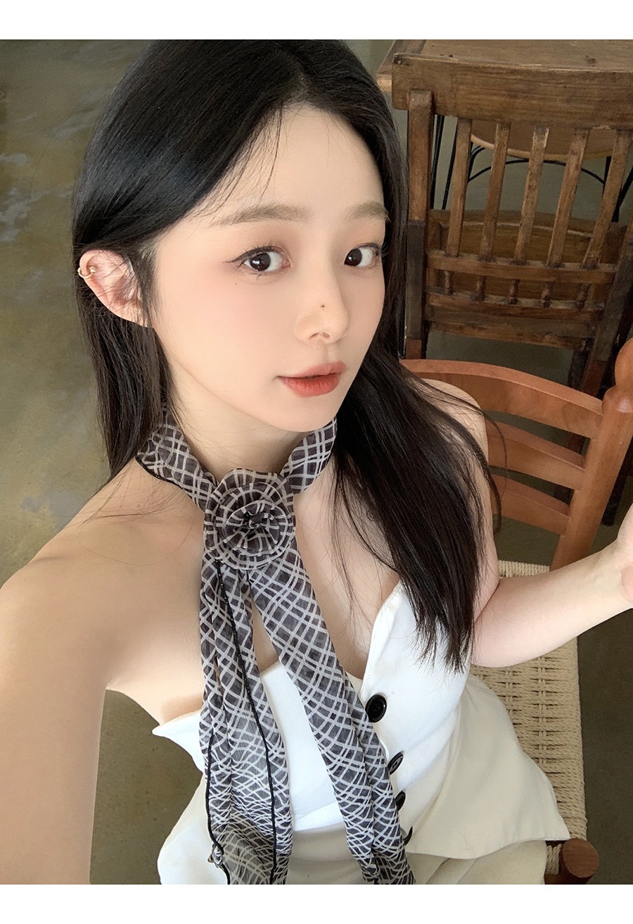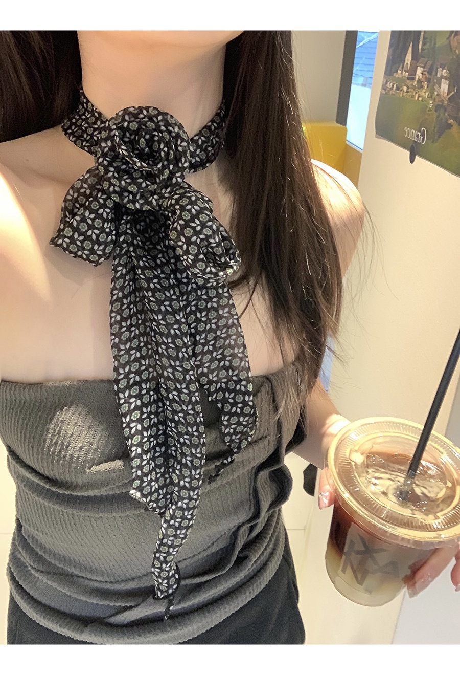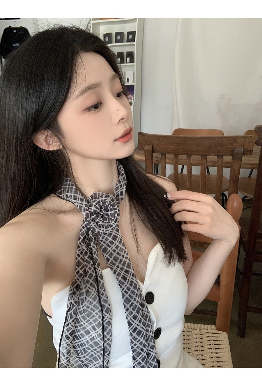 얇고 긴 여름용 쉬폰 스카프 여성용 봄 가을 얇은 장식용 목 보호 스카프 흑백 물방울 무늬 배색 스카프스토어 가기
