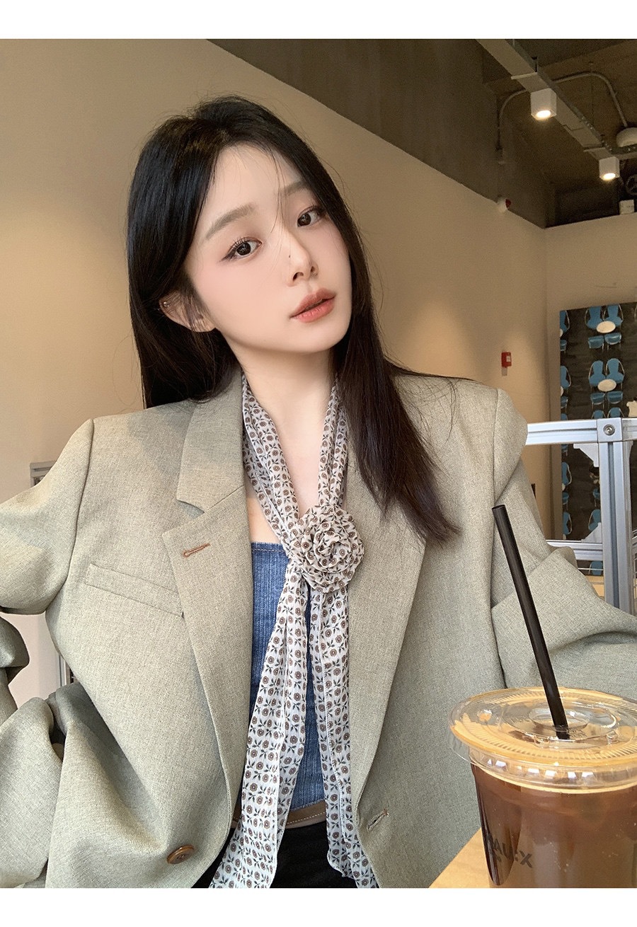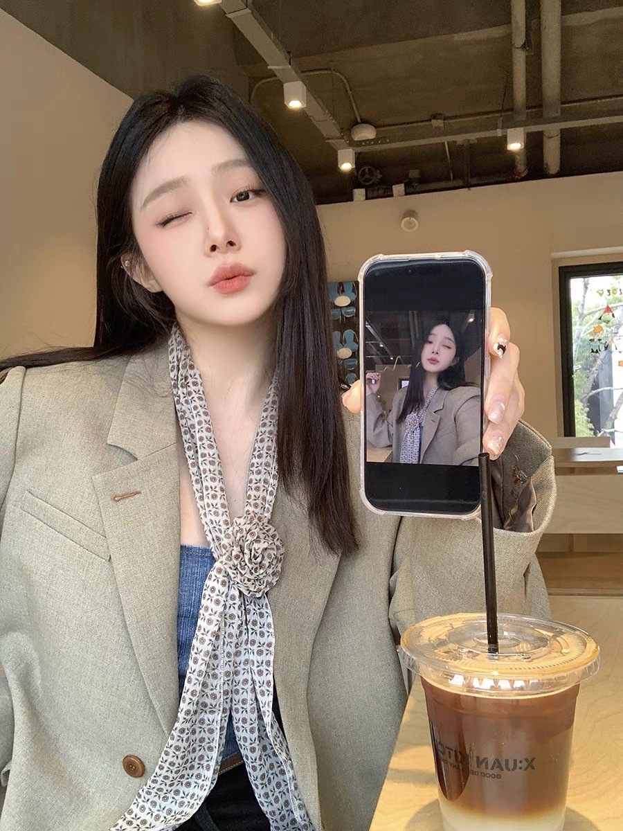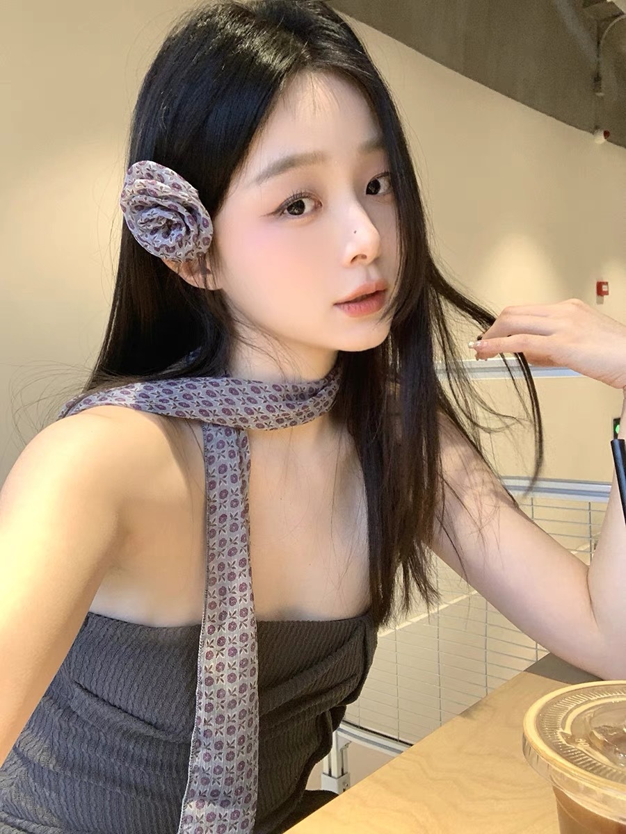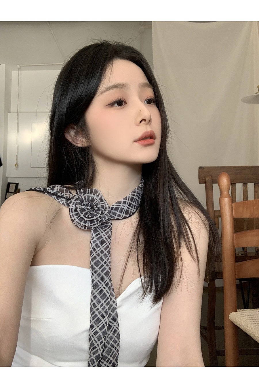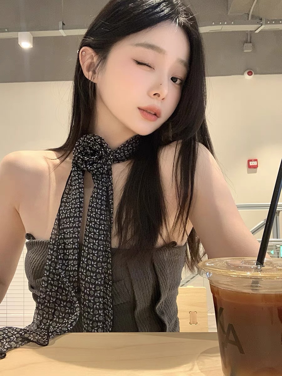 얇고 긴 여름용 쉬폰 스카프 여성용 봄 가을 얇은 장식용 목 보호 스카프 흑백 물방울 무늬 배색 스카프스토어 가기