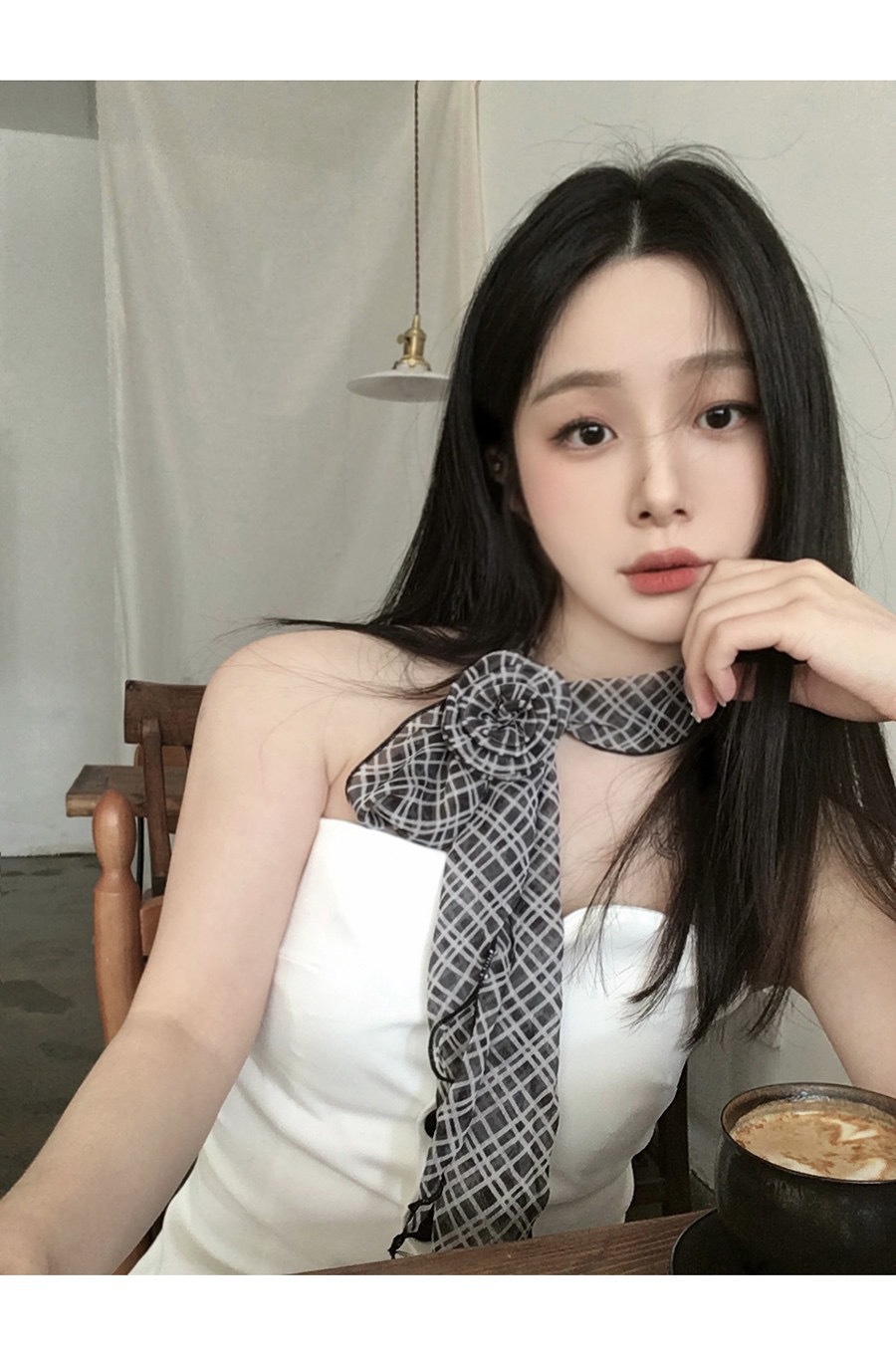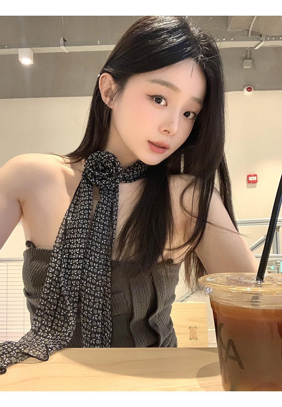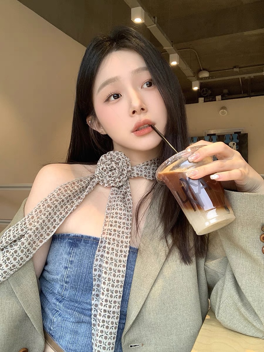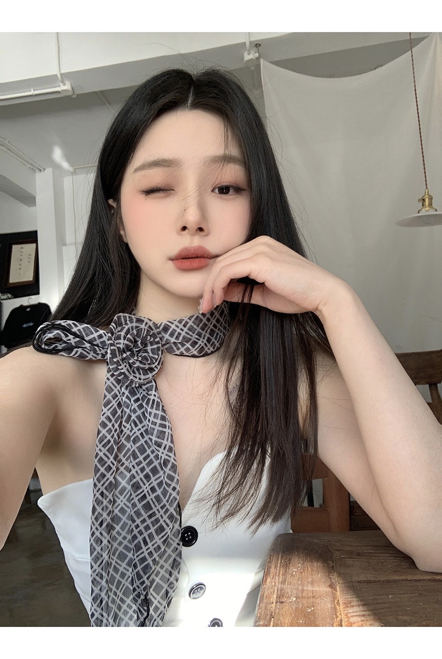 얇고 긴 여름용 쉬폰 스카프 여성용 봄 가을 얇은 장식용 목 보호 스카프 흑백 물방울 무늬 배색 스카프스토어 가기