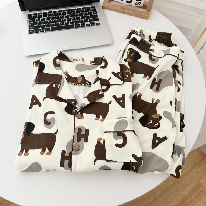 인기있는 만화 닥스 훈트 커플 파자마 얇은 카디건 긴팔 바지 세트 여성 한국식 Ins 홈 의류 남성스토어 가기
