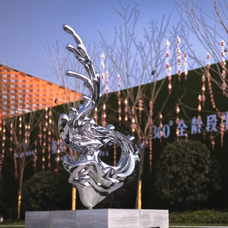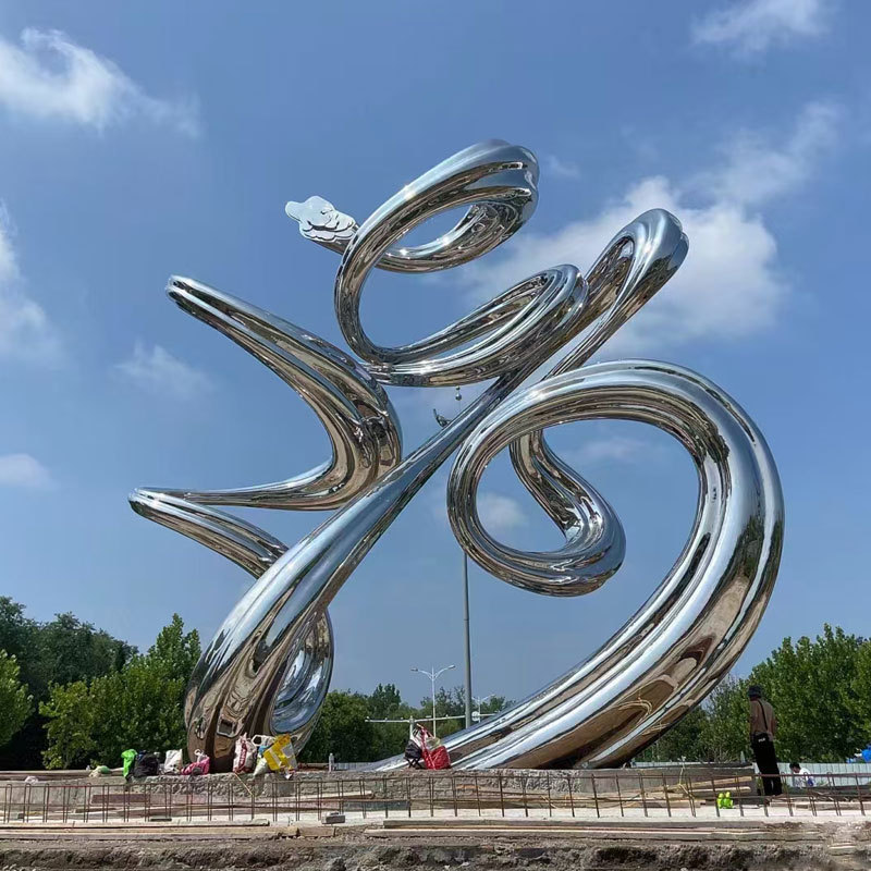 스테인레스 스틸 조각 야외 대형 조경 장식 대형 거울 추상 금속 조각 설치 작품