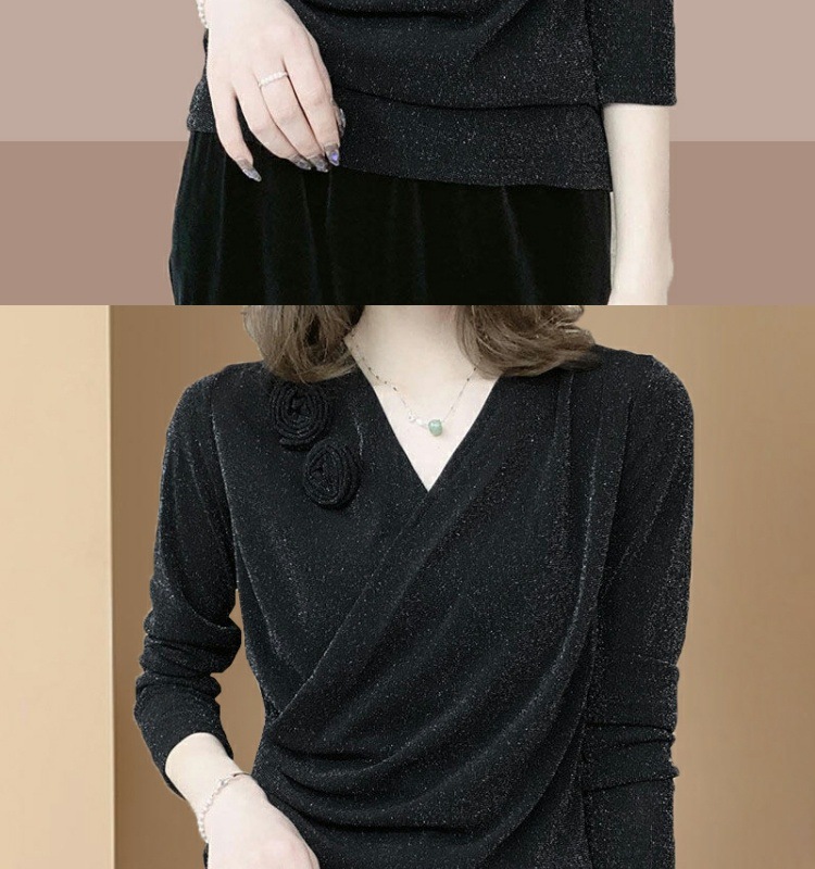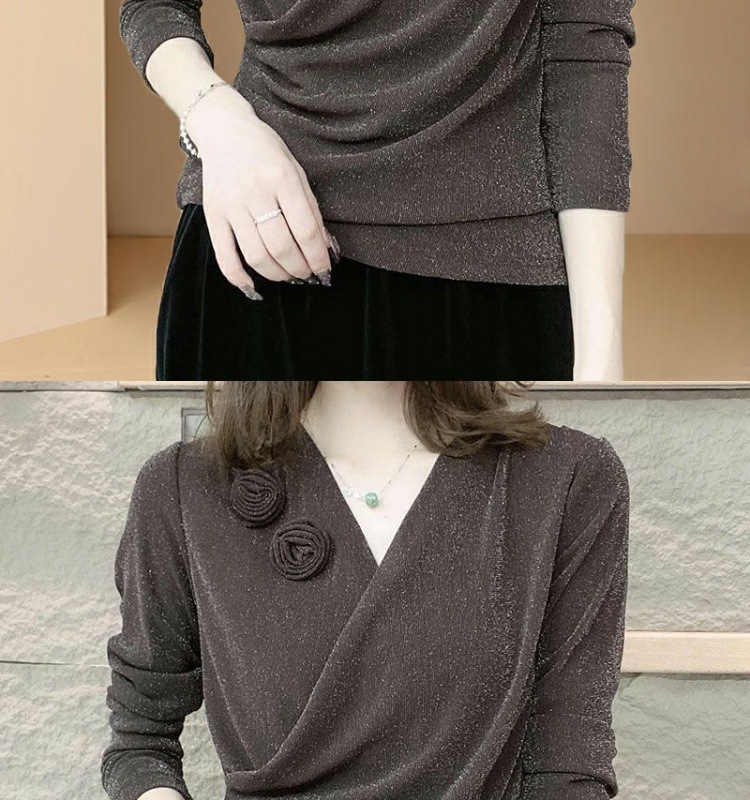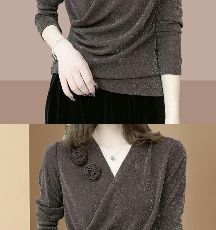 새로운 가을 크로스 디자인 단색 긴 소매 Bottoming 패션 우아한 세련된 나이 감소 셔츠 탑